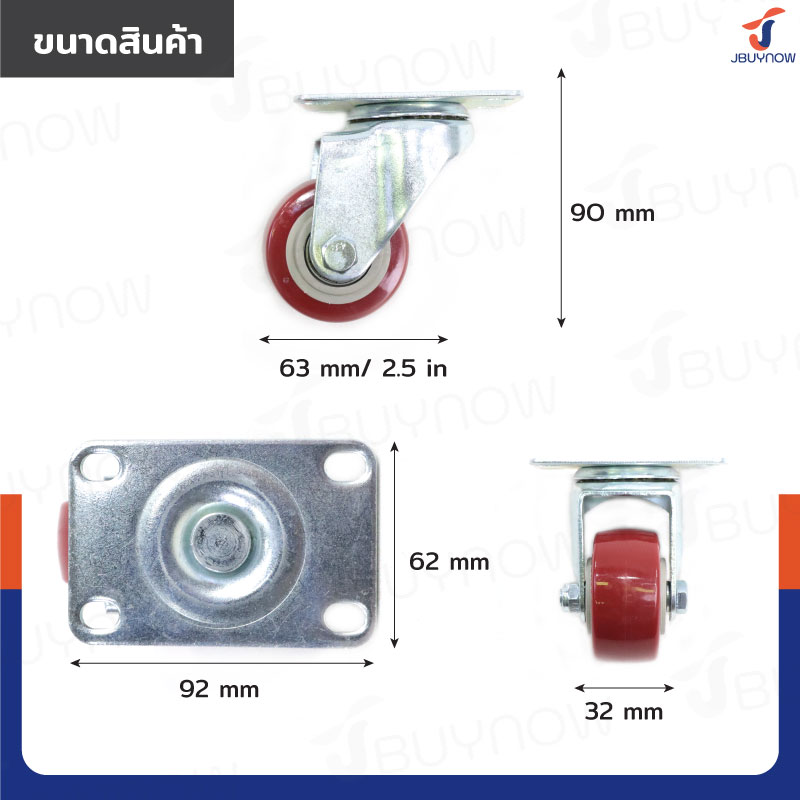 ล้อ 2.5 แป้นเป็น PVC/PU สีแดง JBUYNOW JF-1478063
