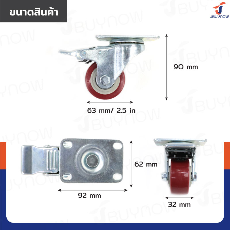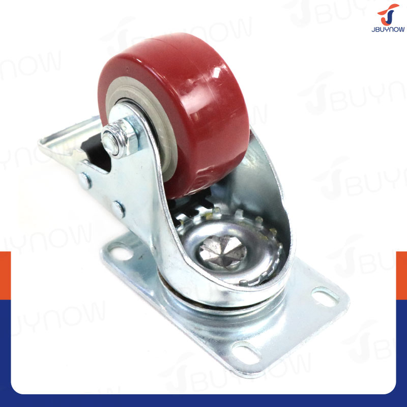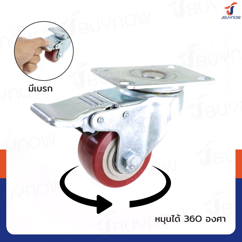 ล้อ 2.5 แป้นเป็น มีเบรก PVC/PU สีแดง JBUYNOW JF-1482063