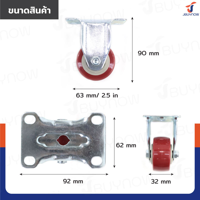 ล้อ 2.5 แป้นตาย PVC/PU สีแดง JBUYNOW JF-1486063