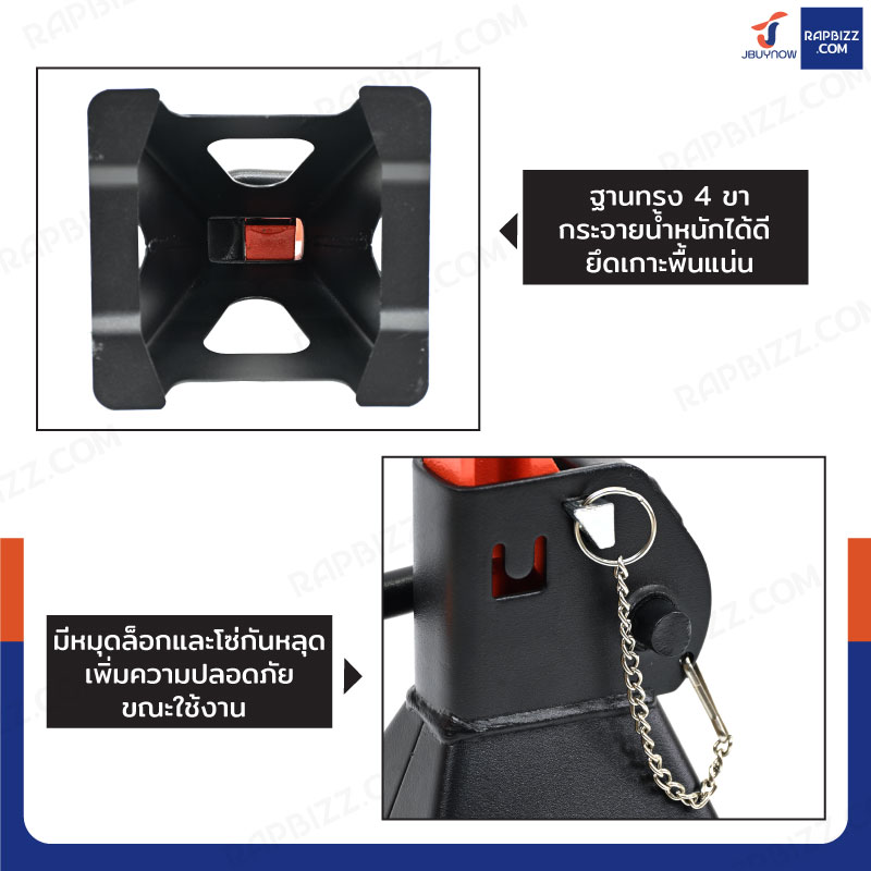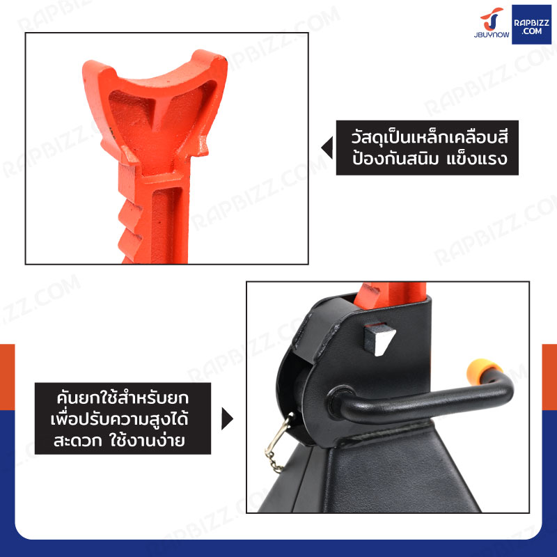 - เหมาะสำหรับงานซ่อมรถ, ตั้งรถยนต์, รถกระบะ, หรือยานพาหนะที่ต้องการรองรับน้ำหนักขณะยกรถ