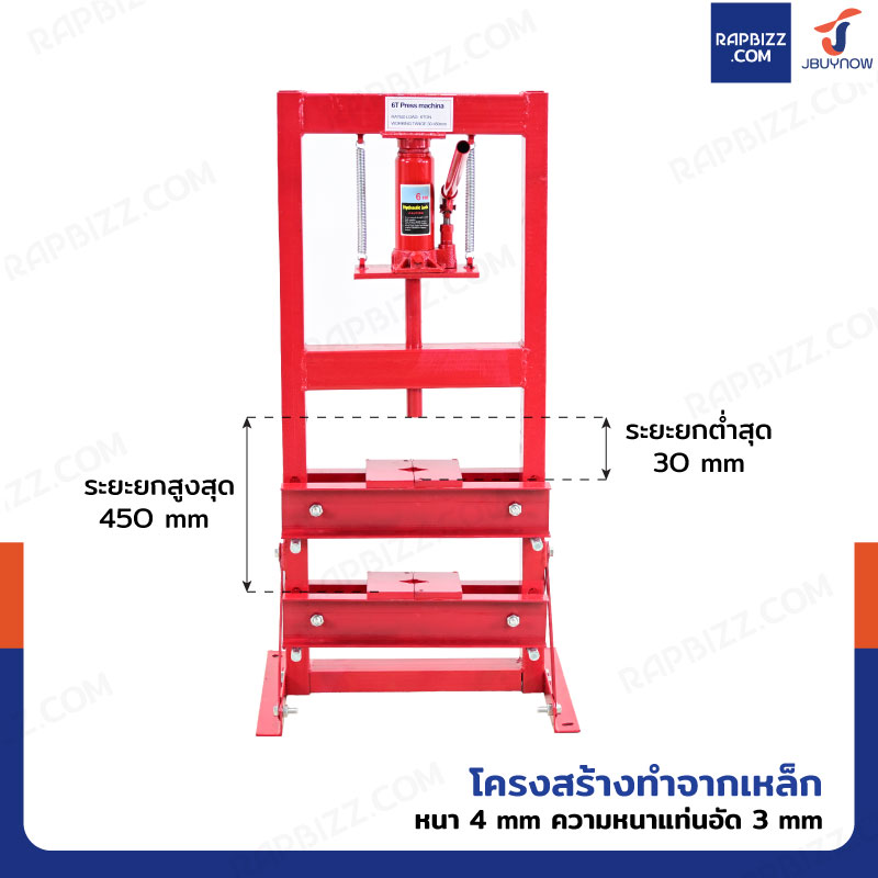 แท่นอัด ไฮดรอลิก 6 ตัน สีแดง รุ่น Heavy duty