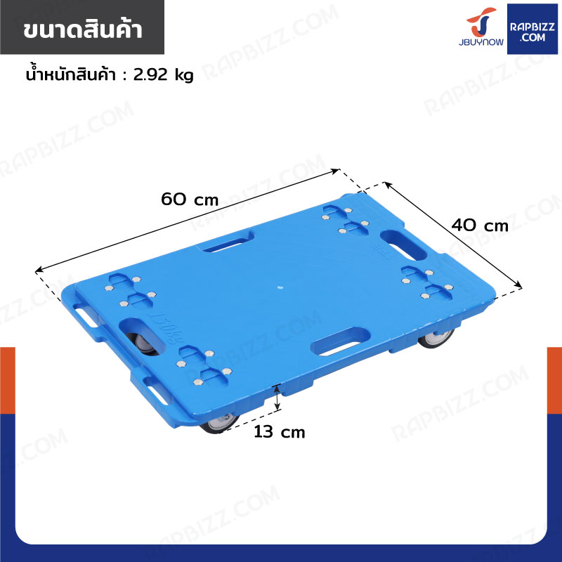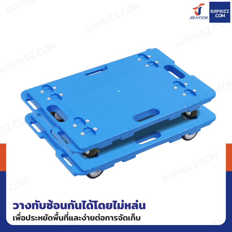 รถเข็นดอลลี่ ล้อเงียบ 3 นิ้ว รับน้ำหนักได้ 150KG 40x60x13 CM สีฟ้า