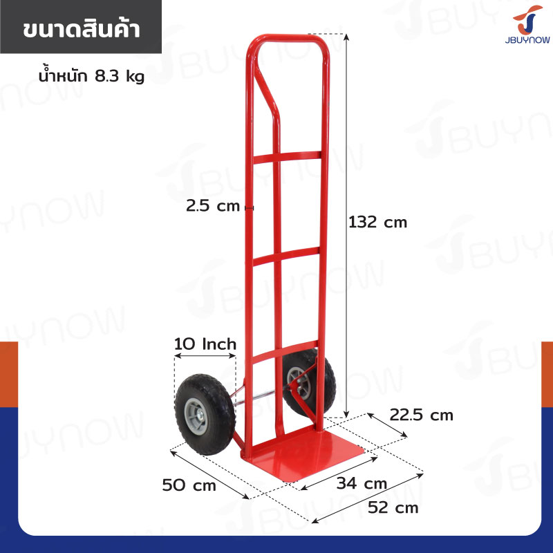 รถเข็นเหล็ก รถเข็นของ 2 ล้อ ทางแคบ หลังตรง52x50x132 ซม. JBUYNOW HT1805
