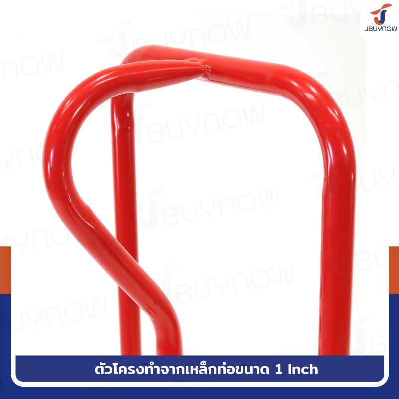 - ตัวโครง ทำจากเหล็กท่อขนาด 1 Inch เคลือบด้วยสีฝุ่นสีแดง ป้องกันสนิม แข็งแรงและทนทานต่อการใช้งาน