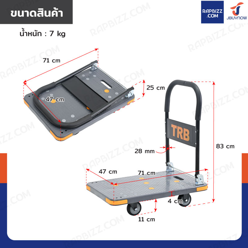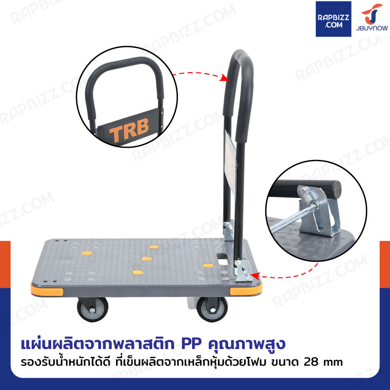 TRB รถเข็นพับได้ รุ่น Heavy มีคานเสริมแรง รับ load 200 KG ล้อเงียบ 4 นิ้ว 47x71x83 CM