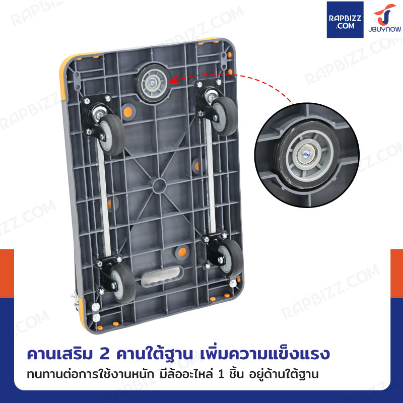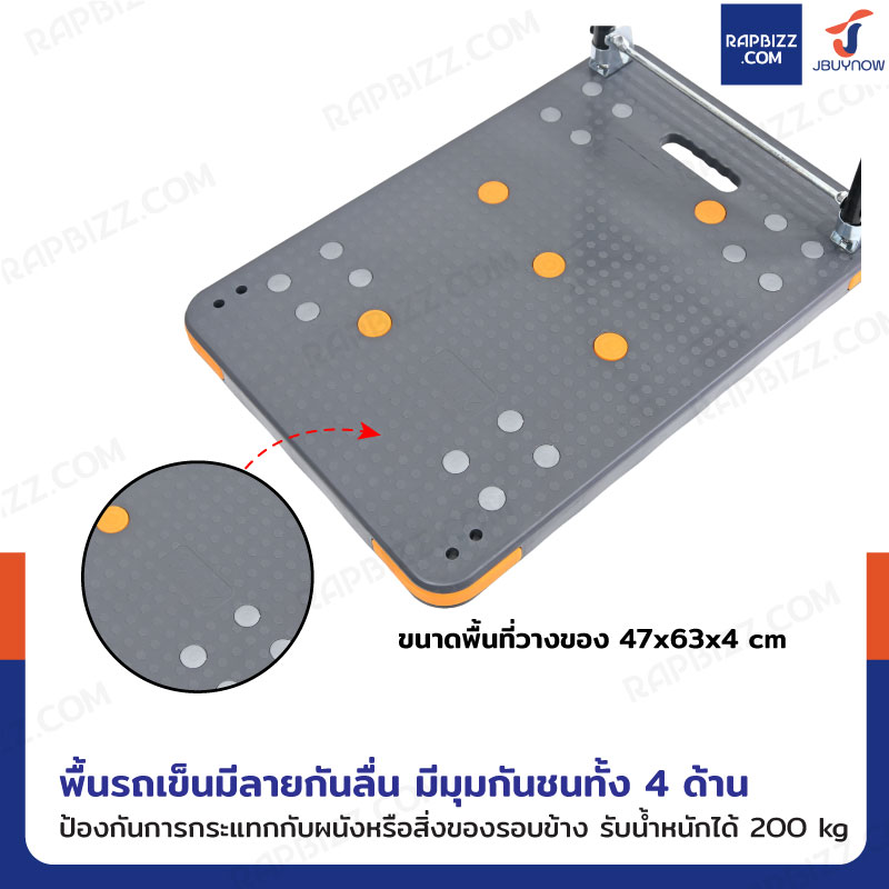 - พื้นรถเข็นลายกันลื่น ช่วยป้องกันสินค้าหลุดเลื่อนระหว่างเข็น