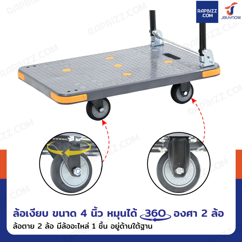 - ล้อหมุนได้ 360 องศา 2 ล้อ ล้อตาย 2 ล้อ