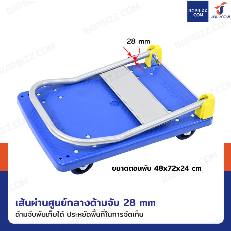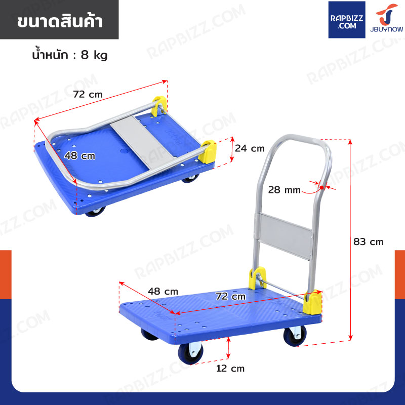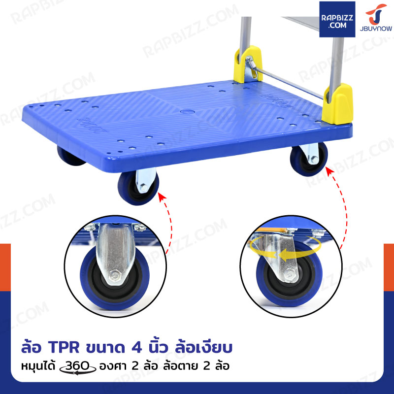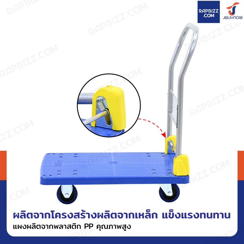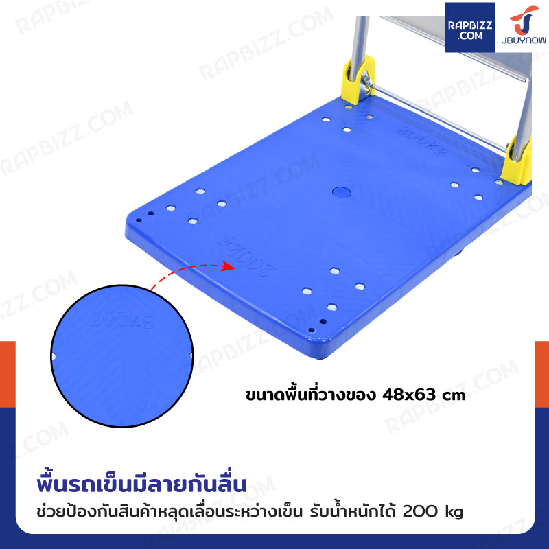 - พื้นรถเข็นมีลายกันลื่น ช่วยป้องกันสินค้าหลุดเลื่อนระหว่างเข็น