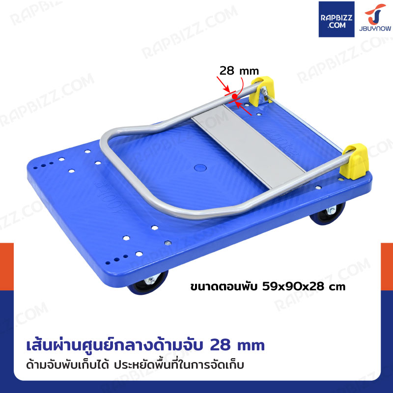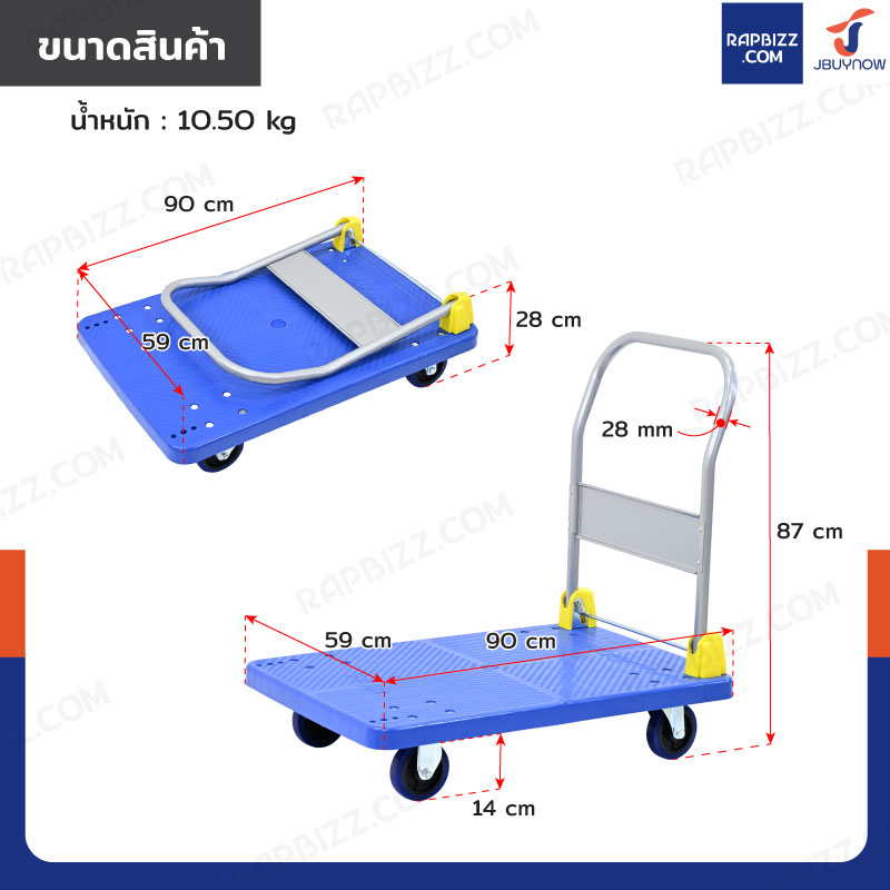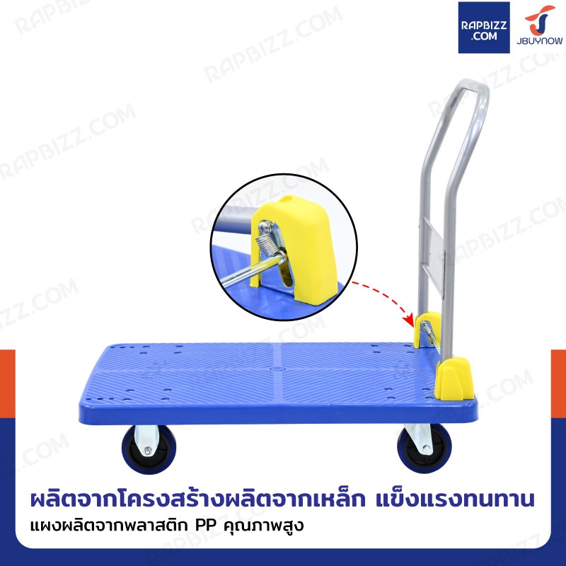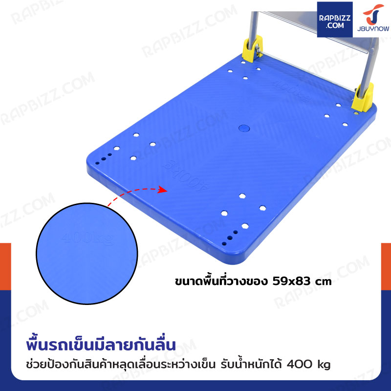 - พื้นรถเข็นมีลายกันลื่น ช่วยป้องกันสินค้าหลุดเลื่อนระหว่างเข็น