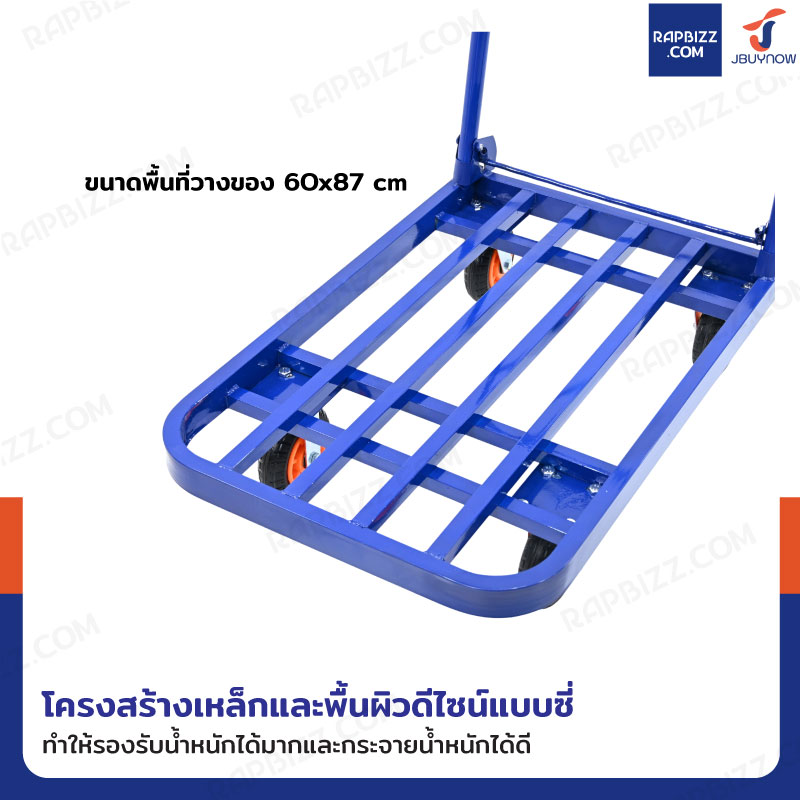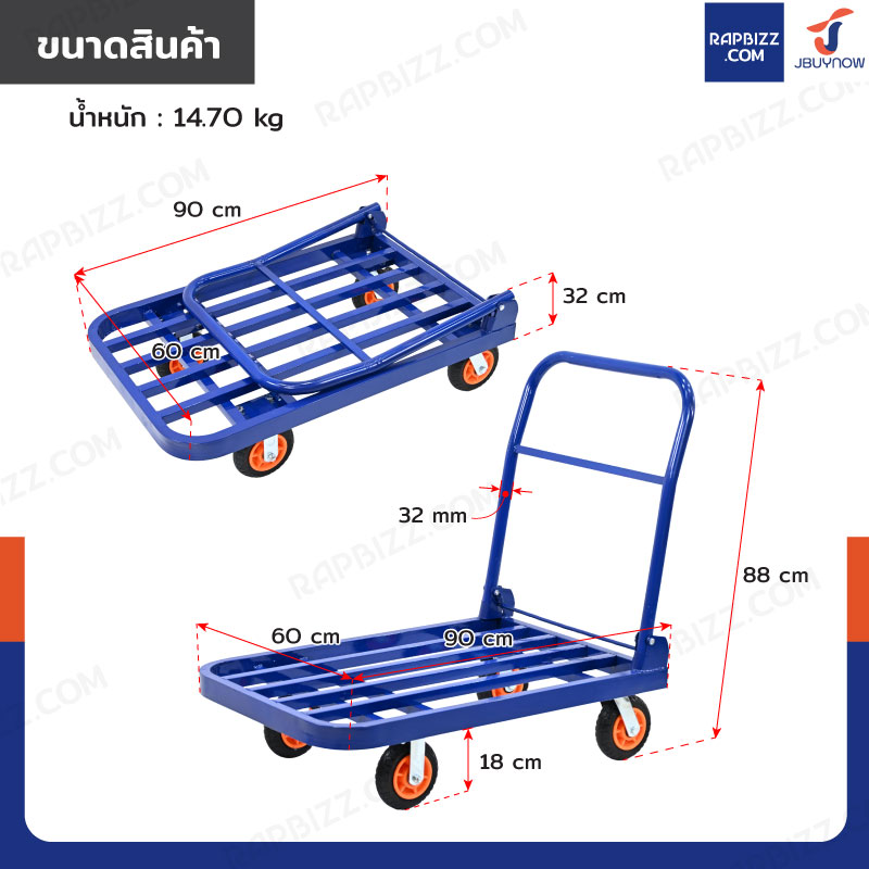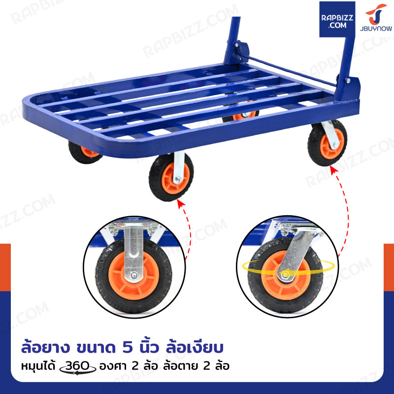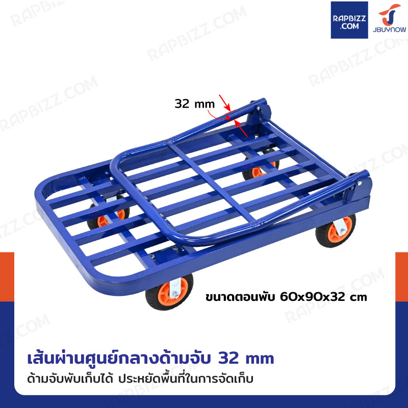 รถเข็นเหล็ก มุมโค้ง พับได้ 60x90x88 CM ล้อยาง 5 นิ้ว รับน้ำหนัก 200 KG
