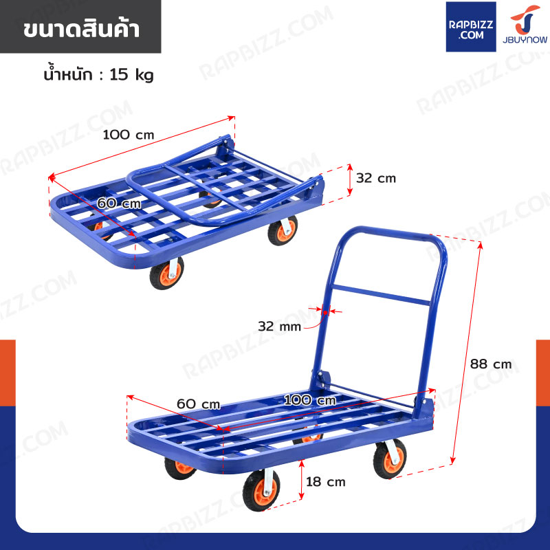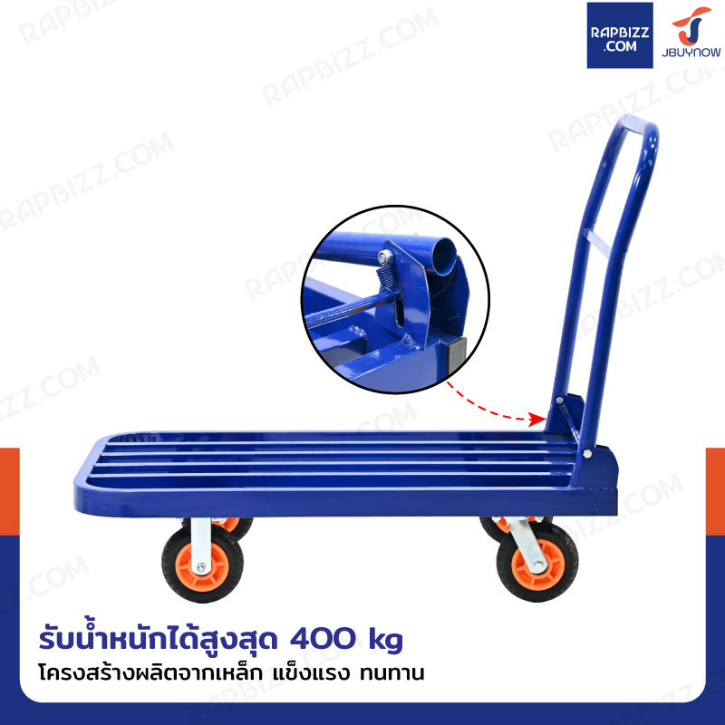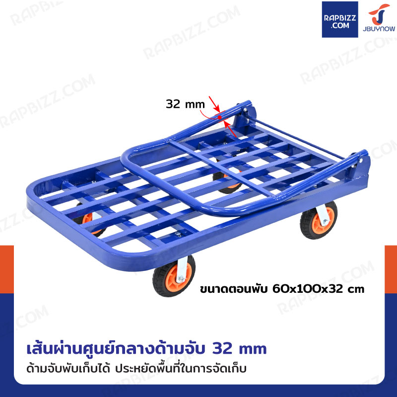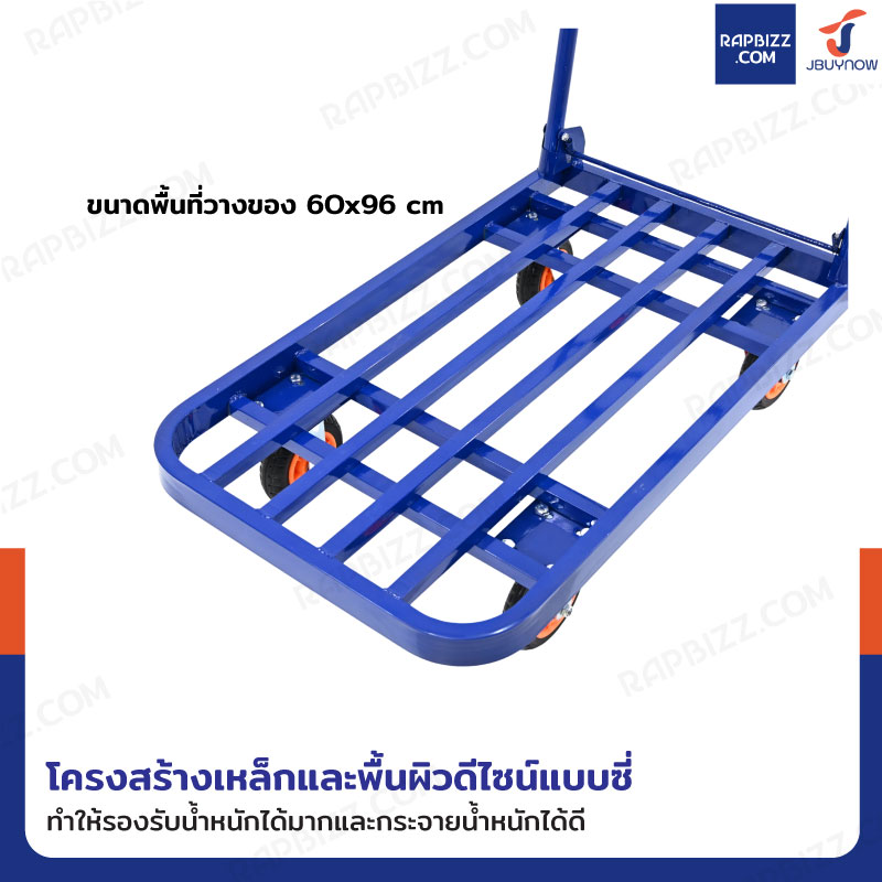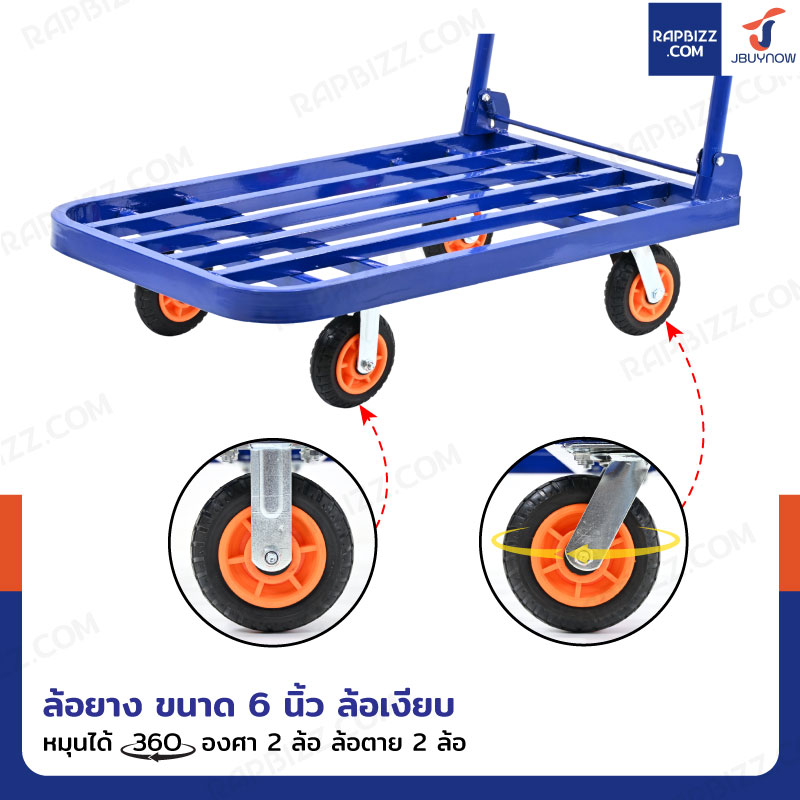 รถเข็นเหล็ก มุมโค้ง พับได้ 60x100x88 CM ล้อยาง 6 นิ้ว รับน้ำหนัก 400 KG