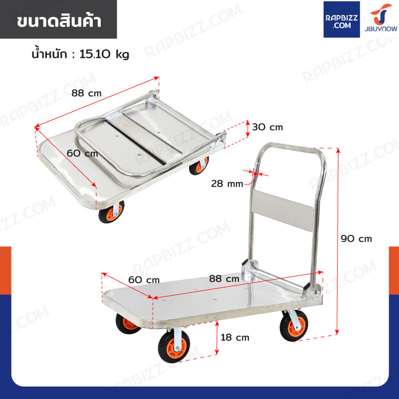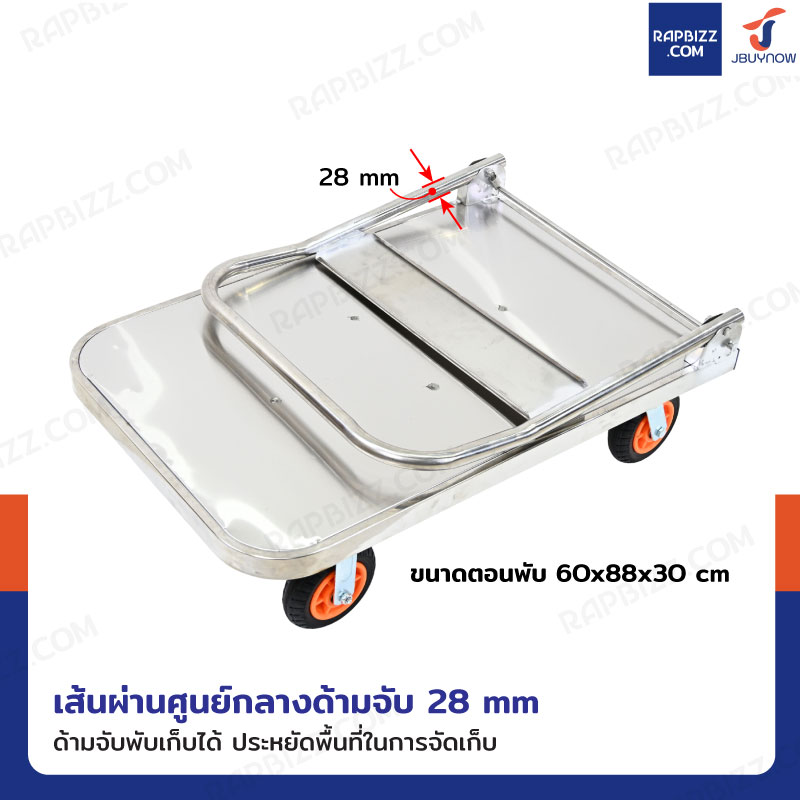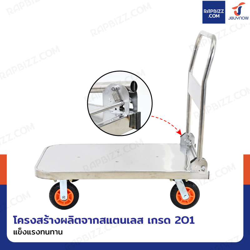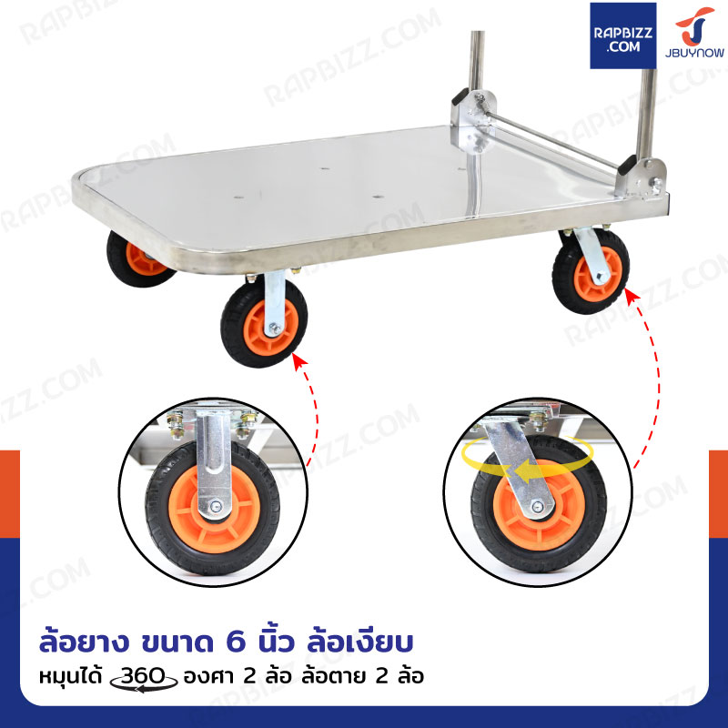 รถเข็นสแตนเลส 201 พับได้ 60x88x90 cm ล้อยาง 6 นิ้ว รับน้ำหนัก 400 KG