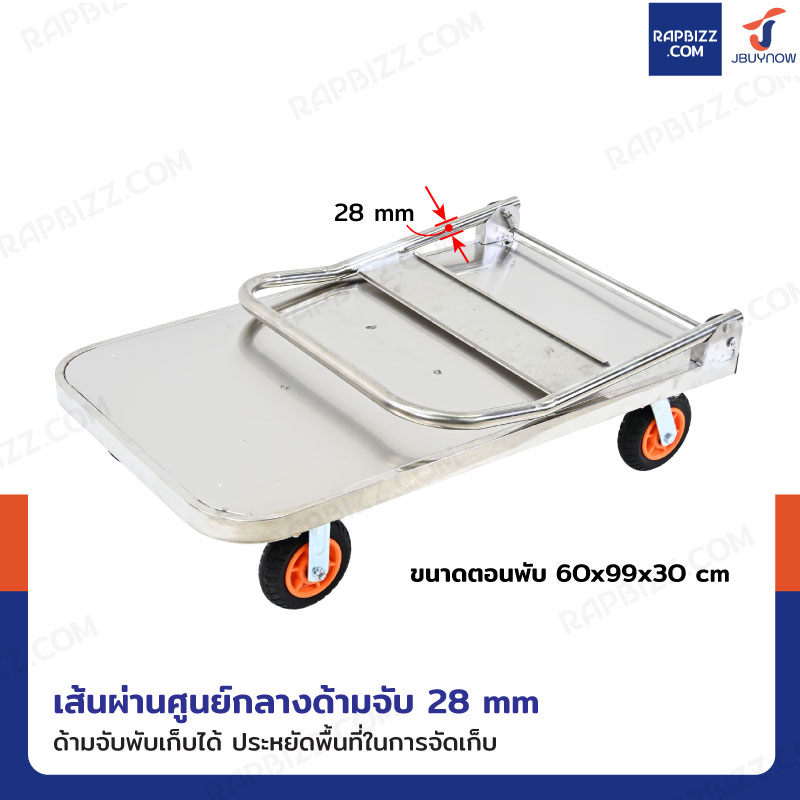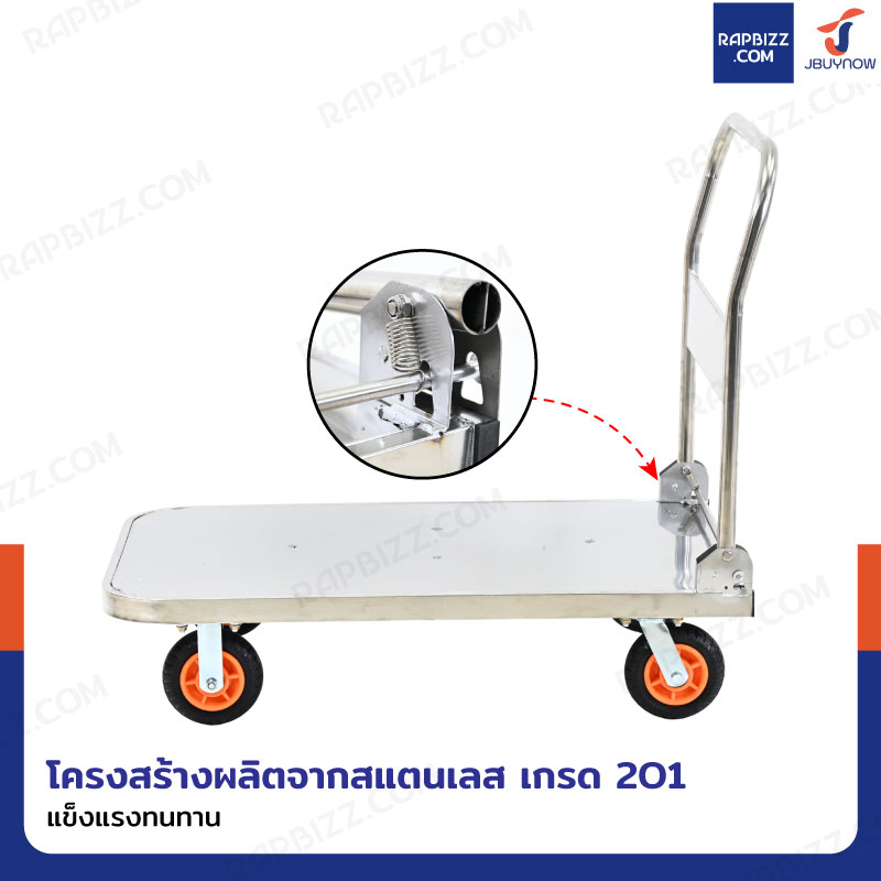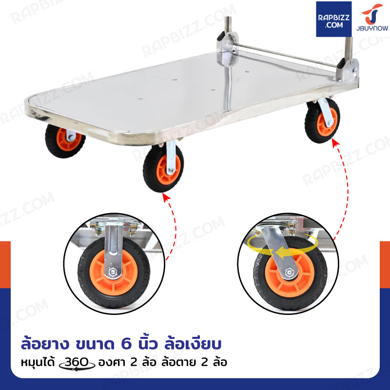 รถเข็นสแตนเลส 201 พับได้ 60x99x90 cm ล้อยาง 6 นิ้ว รับน้ำหนัก 500 KG