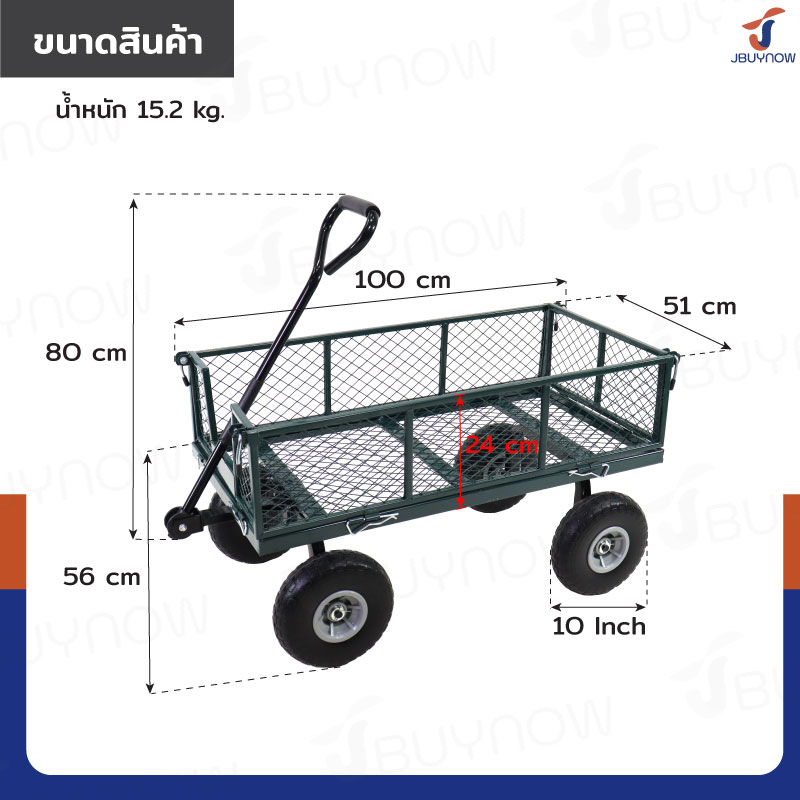รถลากในสวน รุ่น ตะแกรงเหล็ก/ยางตัน 80 กก. 51x100x96ซม.