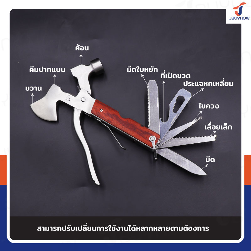 Multitool Hammer ค้อนอเนกประสงค์ ค้อนพกพา แบบหัวขวาน JBUYNOW RB240104-1B