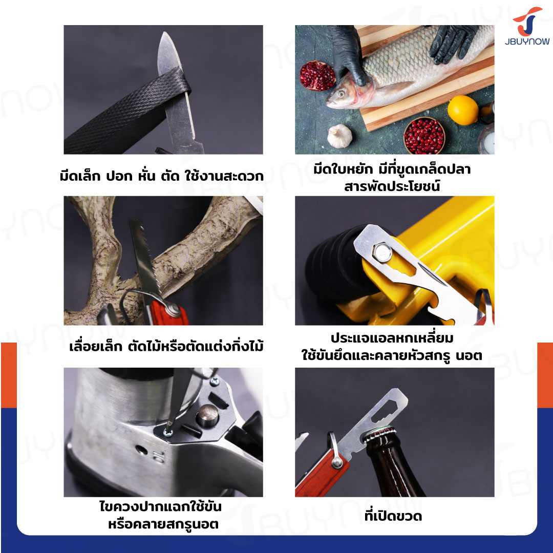 - มีดใบหยัก ใช้สำหรับตัด หั่น มีที่ขูดเกร็ดปลา ใช้งานได้สารพัดประโยชน์
