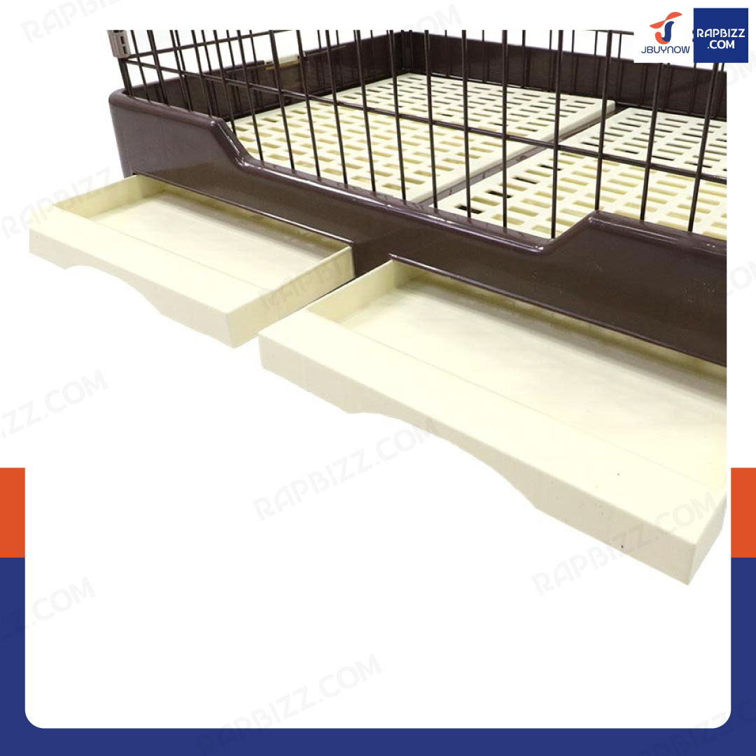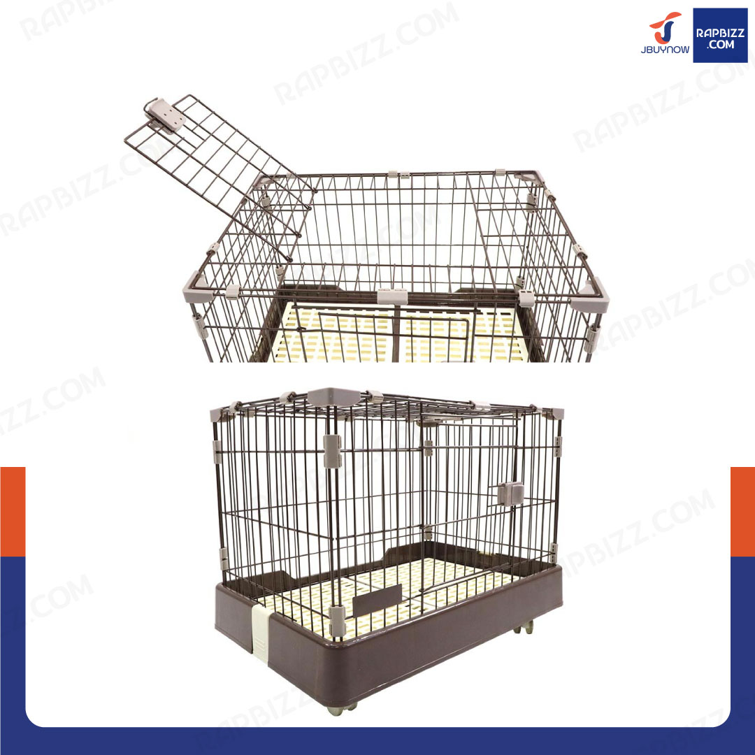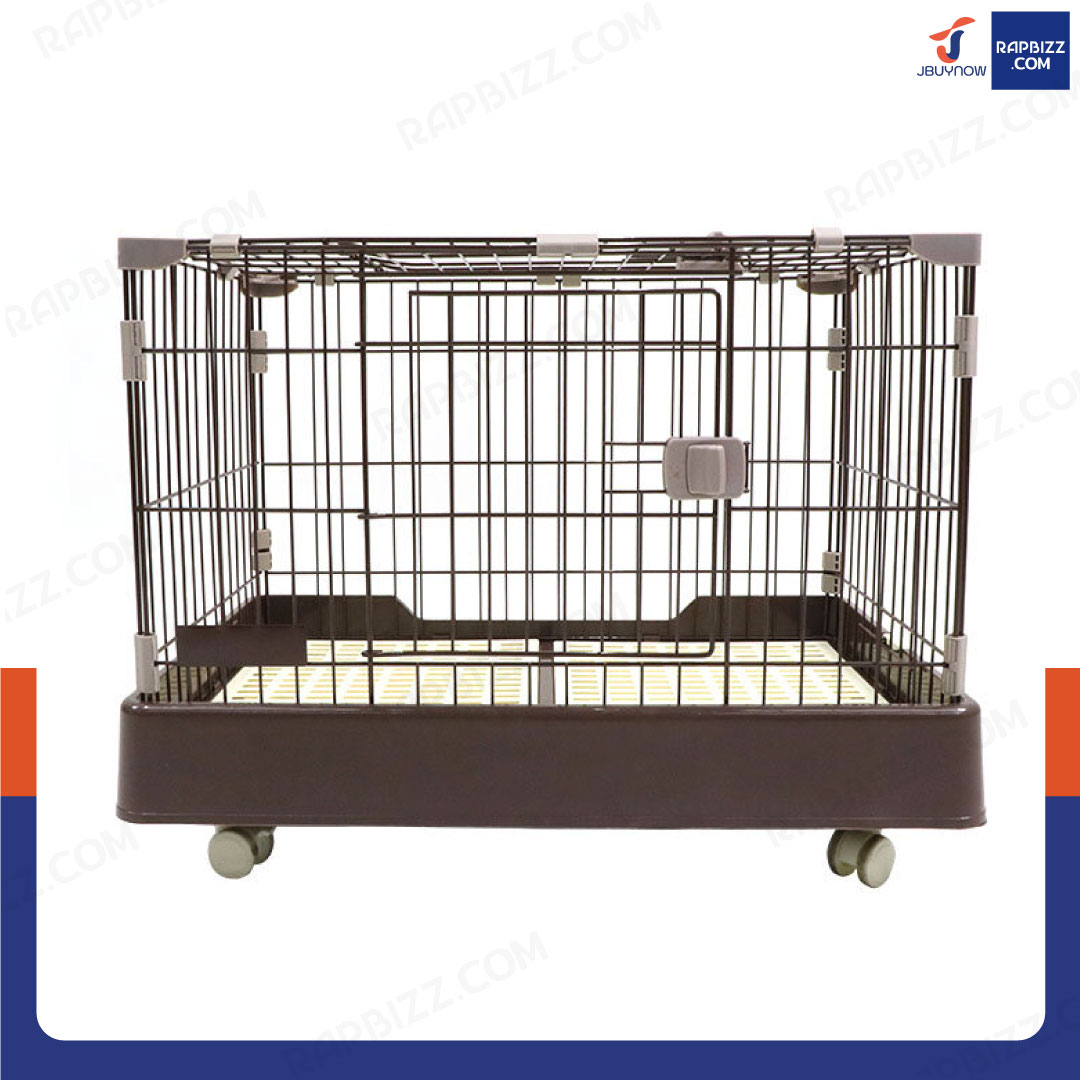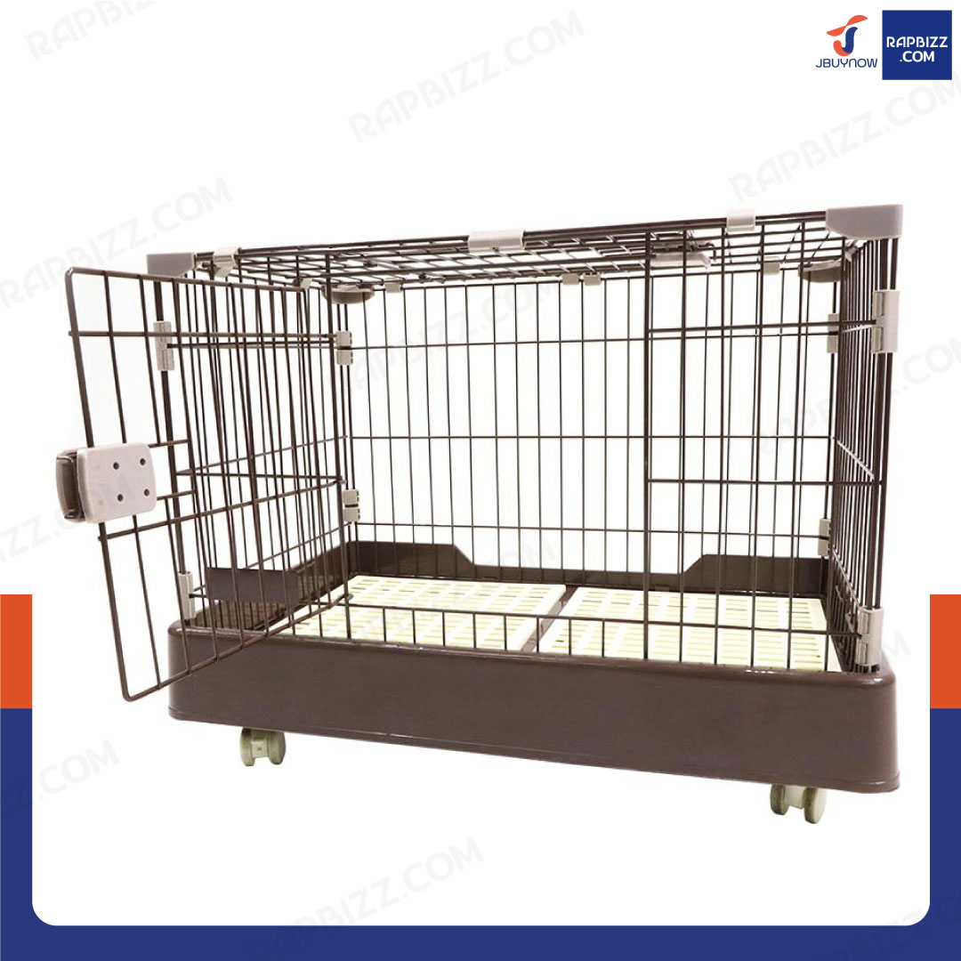 กรงเหล็กมีถาดรองและล้อ สำหรับสัตว์เลี้ยงสีน้ำตาล