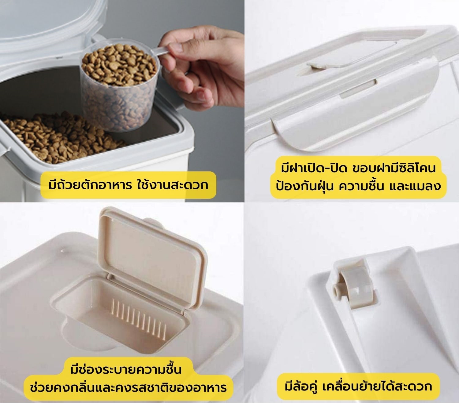 - มีถ้วยตักอาหาร ใช้งานสะดวก