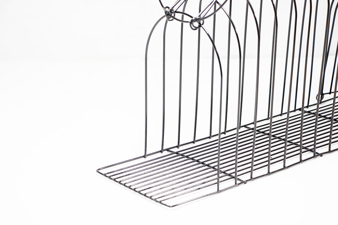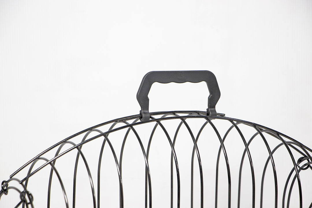- เป็นกรงเหล็ก พื้นตะแกรงถี่กันลื่น กันการเจ็บเท้า