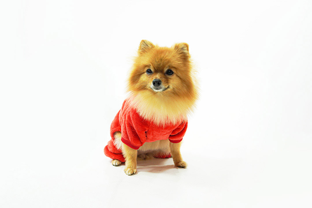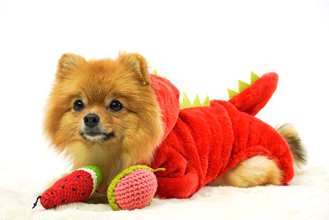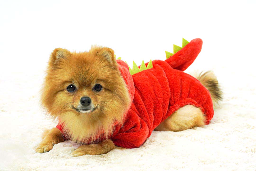- ชุดสุนัขแฟนซี ลายไดโนเสาร์สีแดง Size M