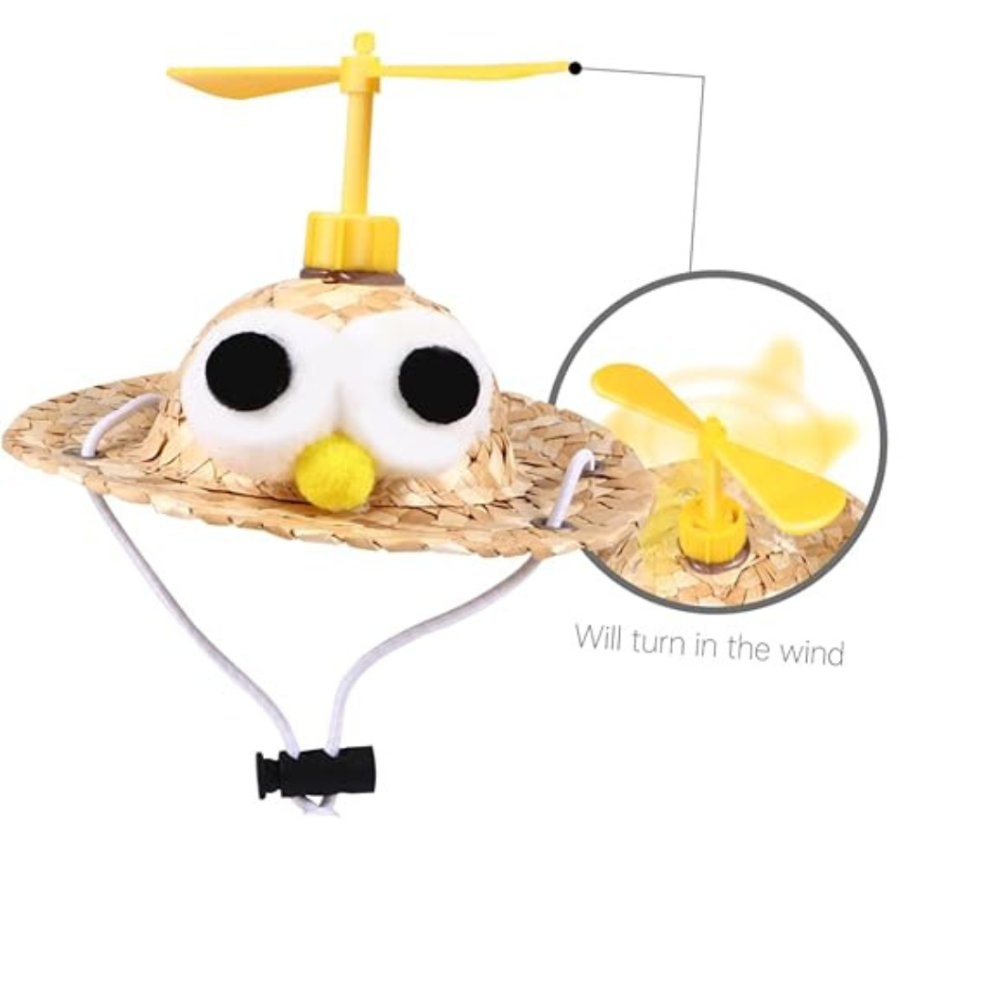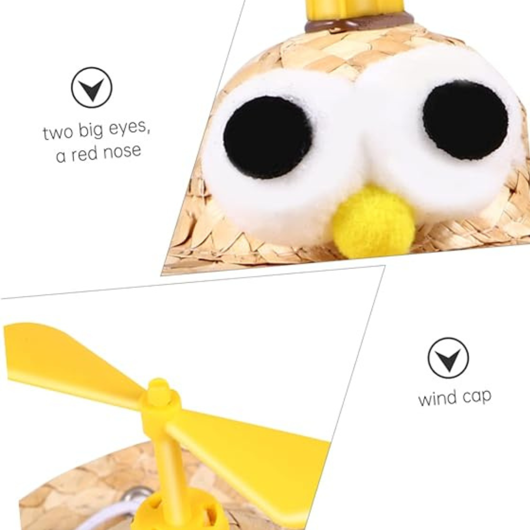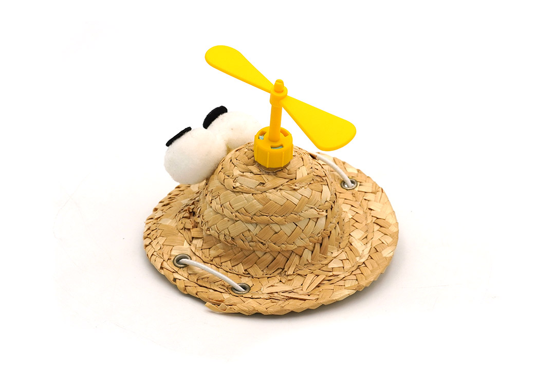 - หมวกฟางตกแต่งด้วยใบพัด เมื่อสัมผัสกับลมใบพัดจะหมุนได้