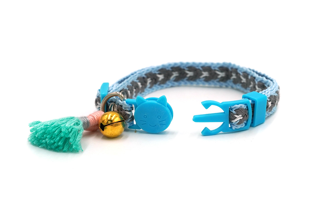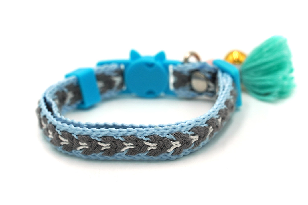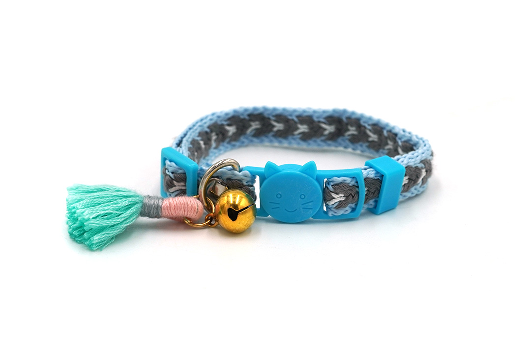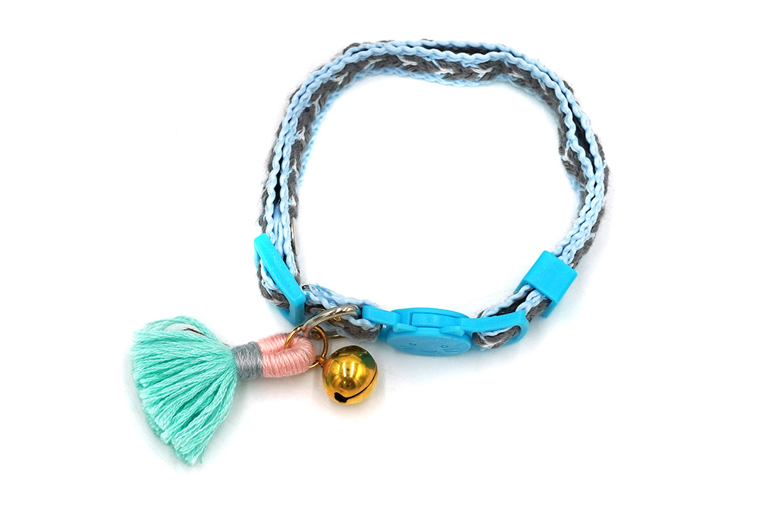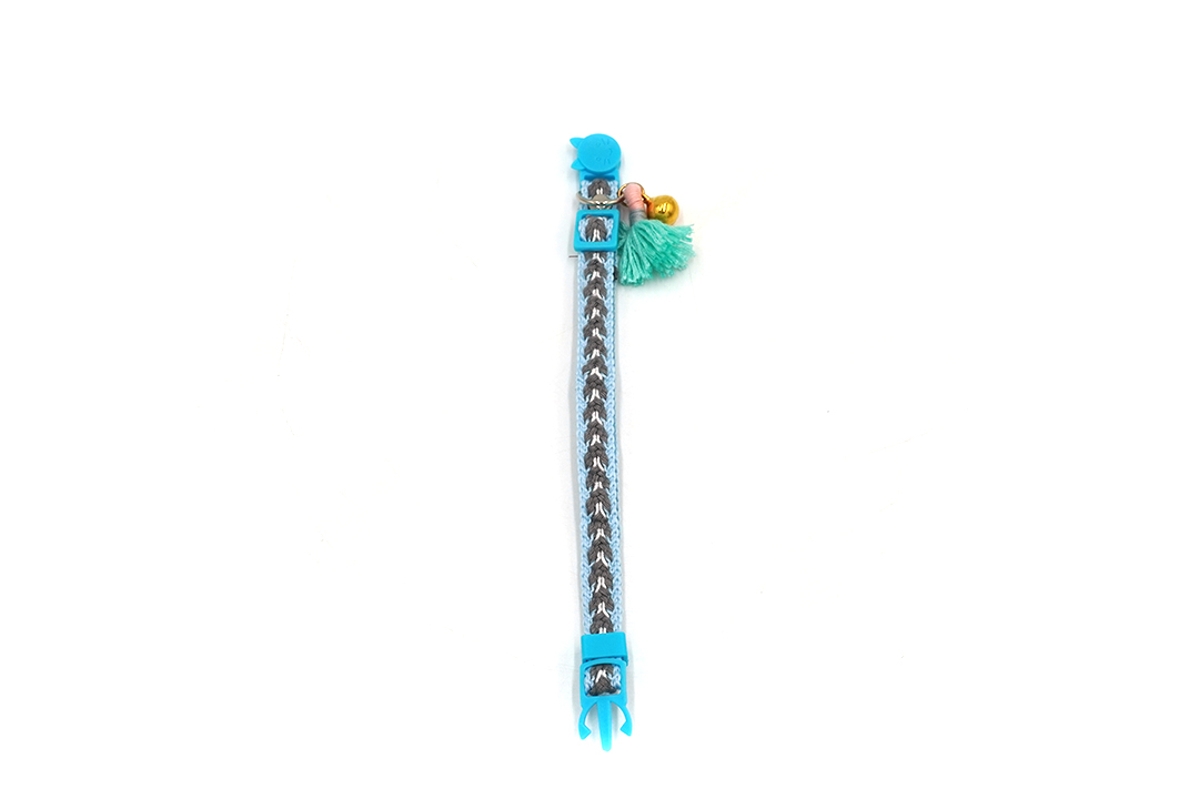 Pet collar ปลอกคอสุนัข ปลอกคอแมว มีพู่ ปรับความยาวได้ 22-30 cm สีฟ้า STP210617-18BL