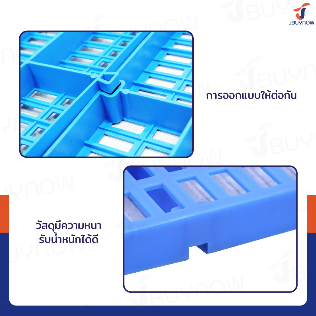 - ปรับใช้งานได้หลายหลาย เช่น ใช้เป็นแผ่นรองกรง ใช้ในคลังสินค้า หรือใช้รองต้นกล้าในโรงเพาะต้นไม้
