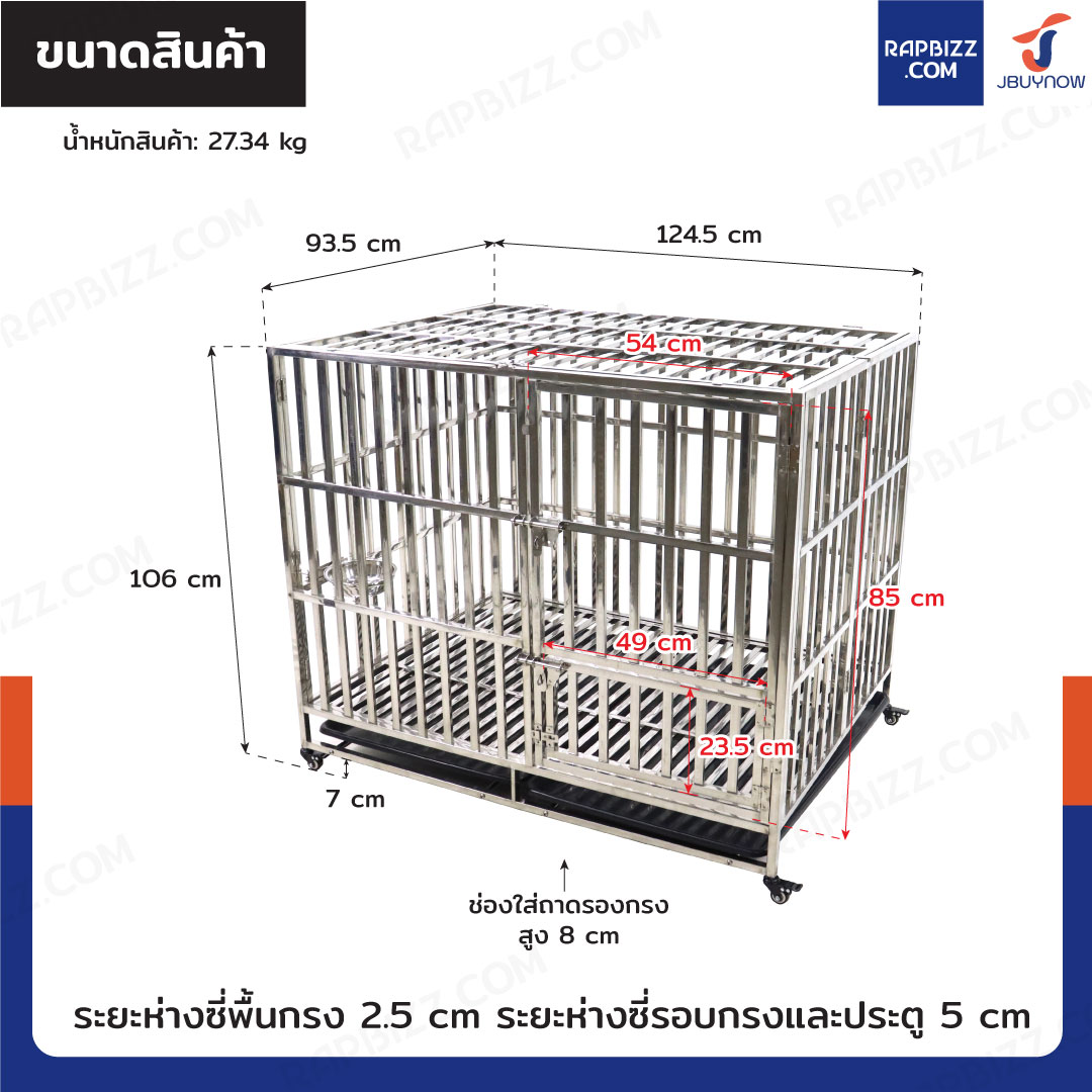 - ระยะห่างระหว่างซี่พื้นกรง: 2.5 cm