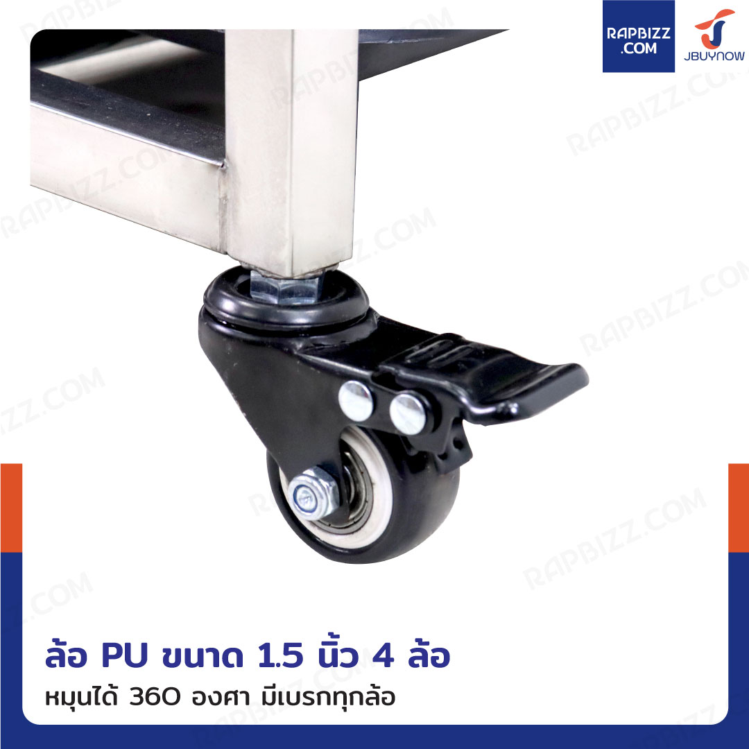 - ล้อ PU ขนาด: 1.5 inch 4 ล้อ (สามารถหมุนได้ 360 องศา มีเบรกทุกล้อ)