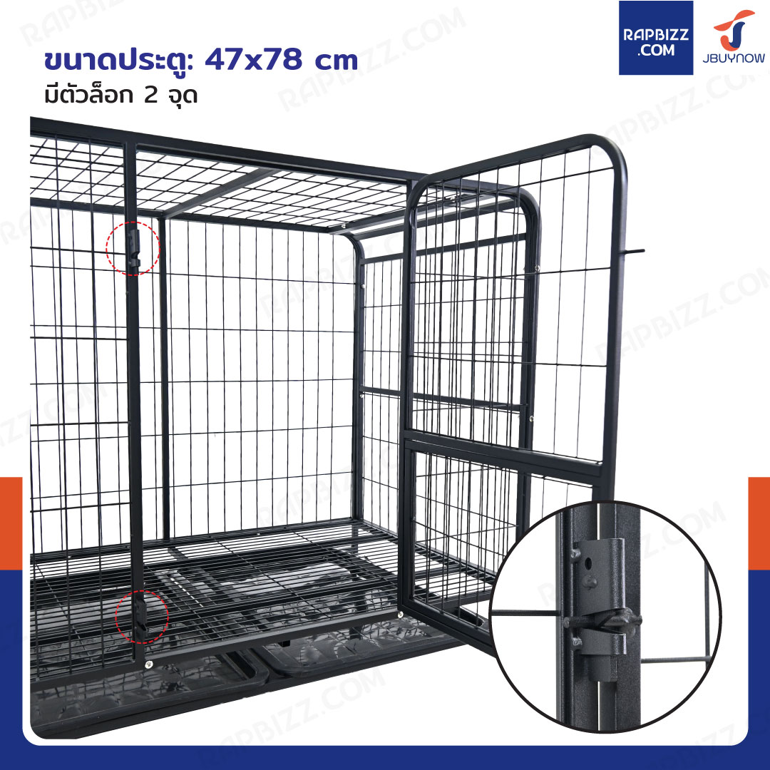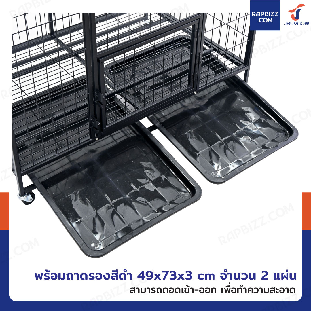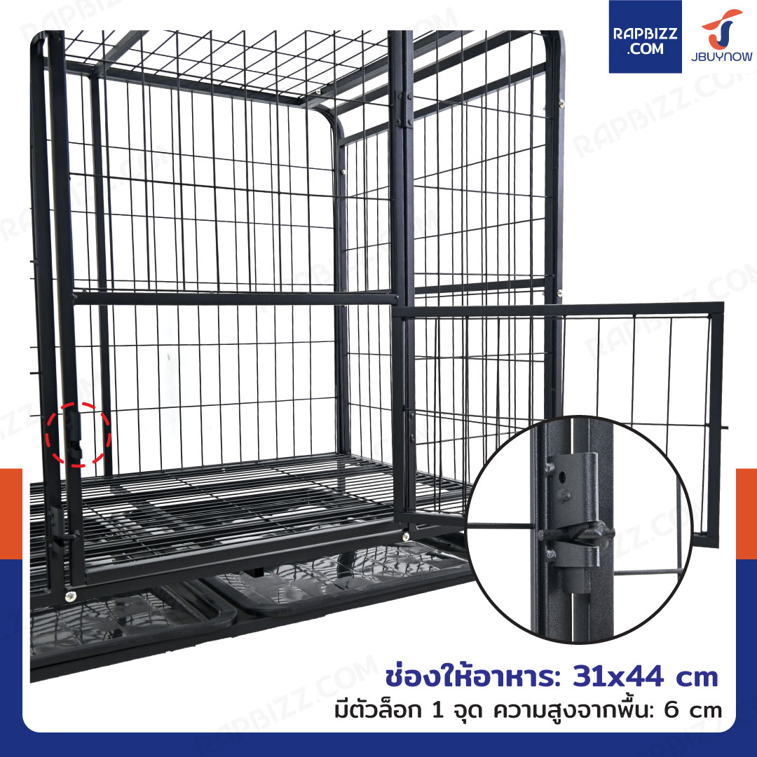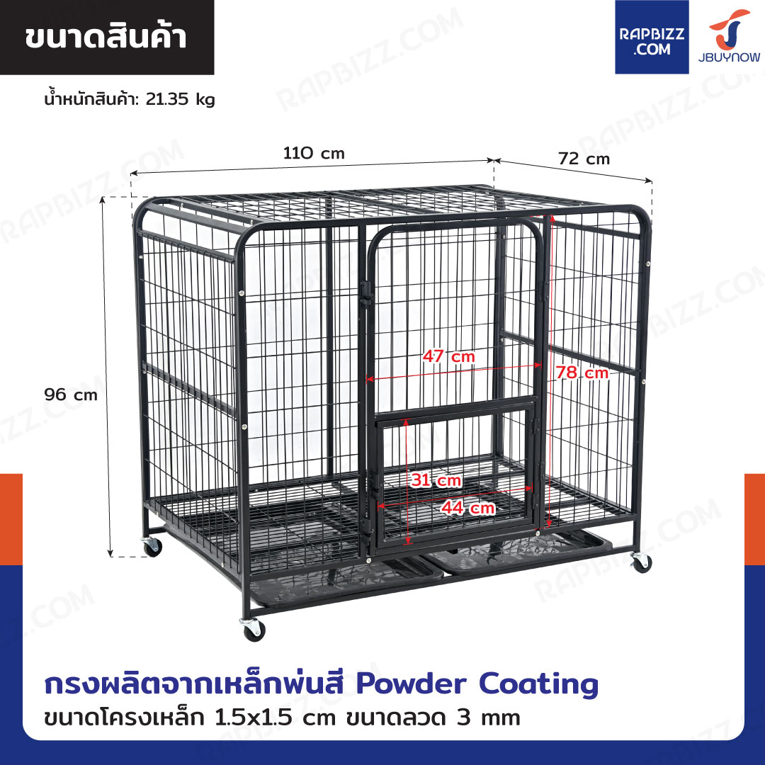 กรงสุนัข กรงสัตว์เลี้ยง พร้อมถาดรองและล้อ 72x110x96 CM สีดำด้าน