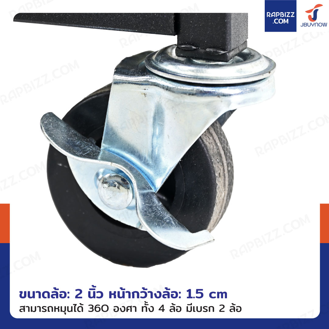 - สามารถหมุนได้ 360 องศา ทั้ง 4 ล้อ มีเบรก 2 ล้อ