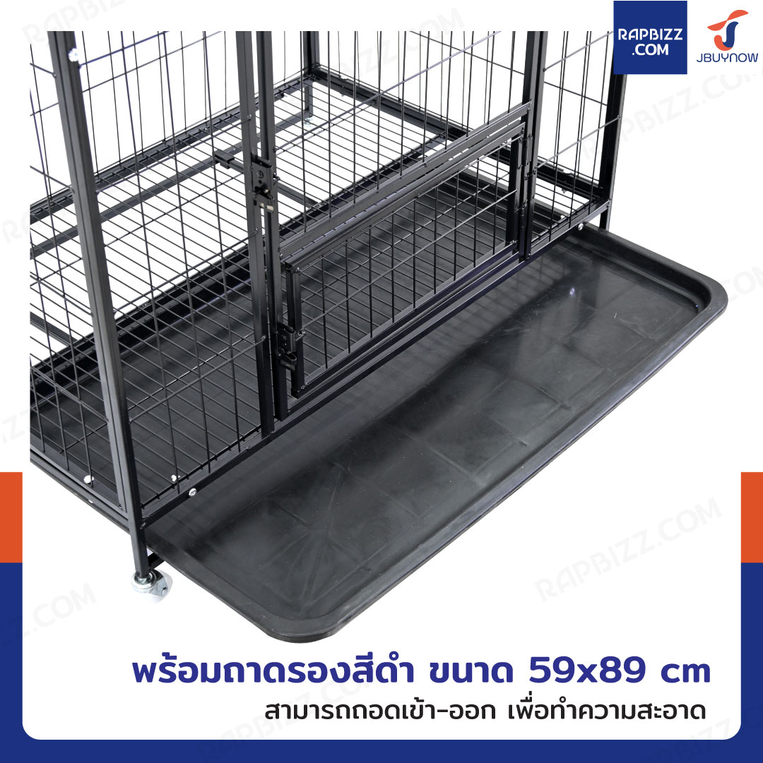 กรงสุนัข กรงสัตว์เลี้ยง พร้อมถาดและแผ่นรองกรง Size M 63x93x80 cm สีดำ