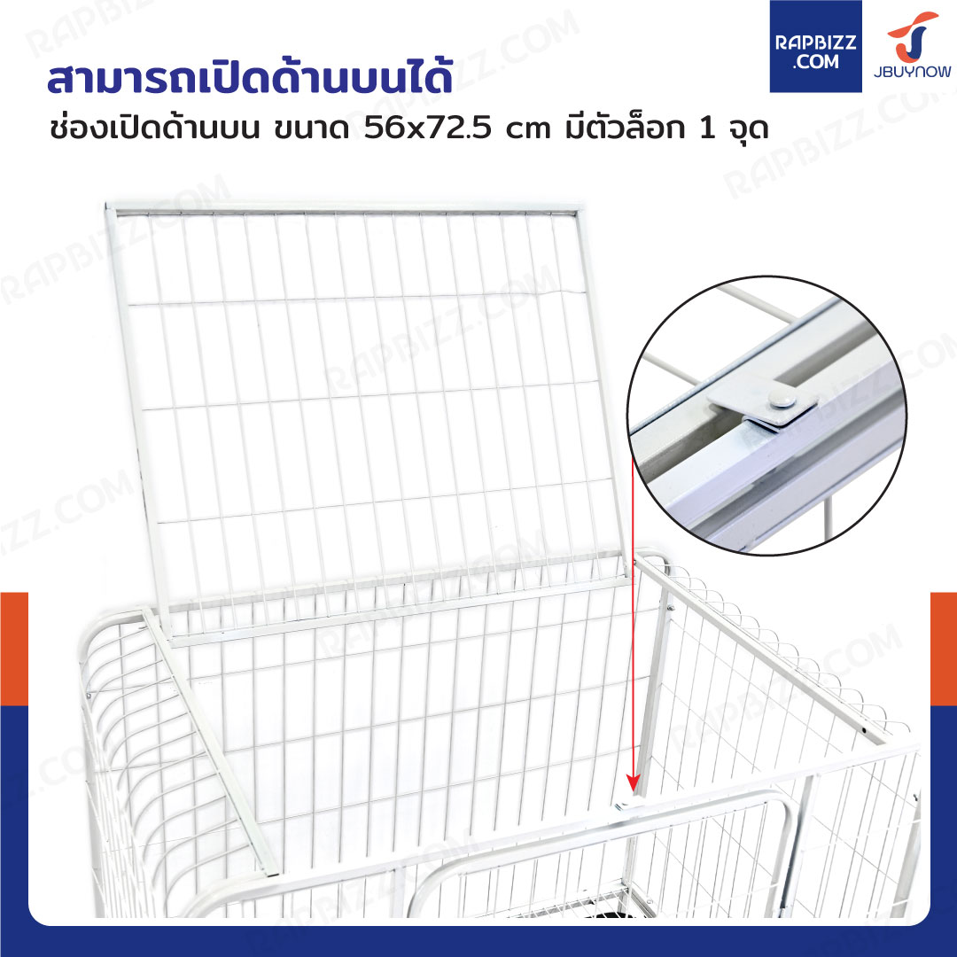 กรงสุนัข กรงสัตว์เลี้ยง พร้อมถาดรองและล้อ Size M 63x93x80 cm สีขาว