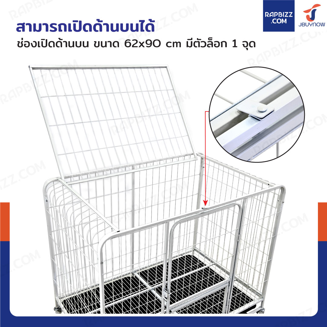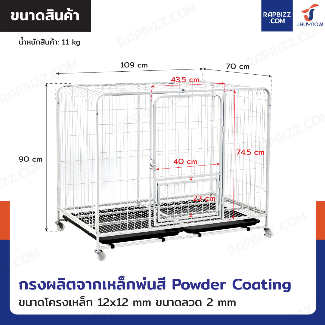กรงสุนัข กรงสัตว์เลี้ยง พร้อมถาดรองและล้อ Size L 70x109x90 cm สีขาว