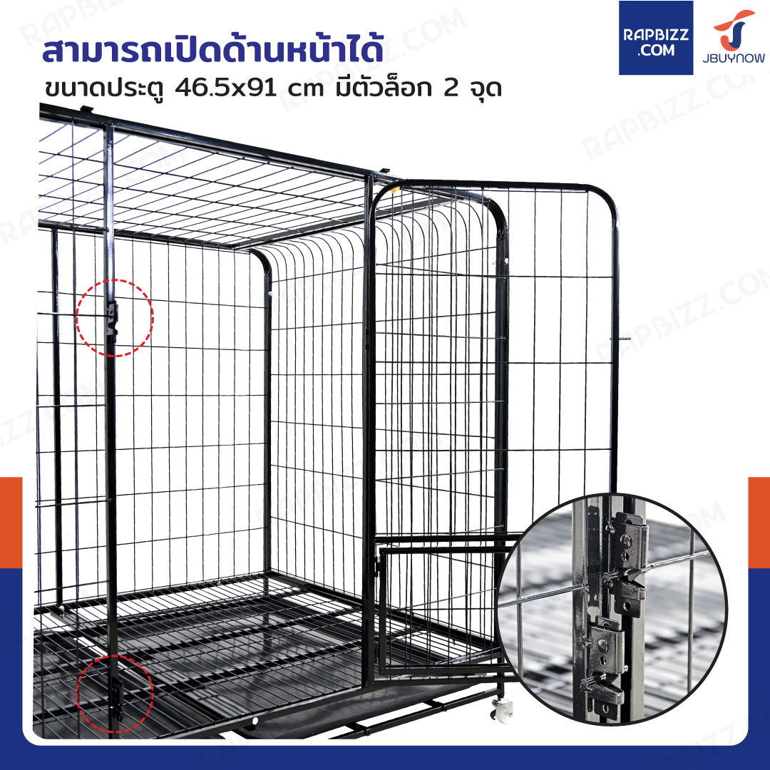กรงสุนัข กรงสัตว์เลี้ยง พร้อมถาดรองและล้อ Size XL 93x124x111 cm สีดำ 125B