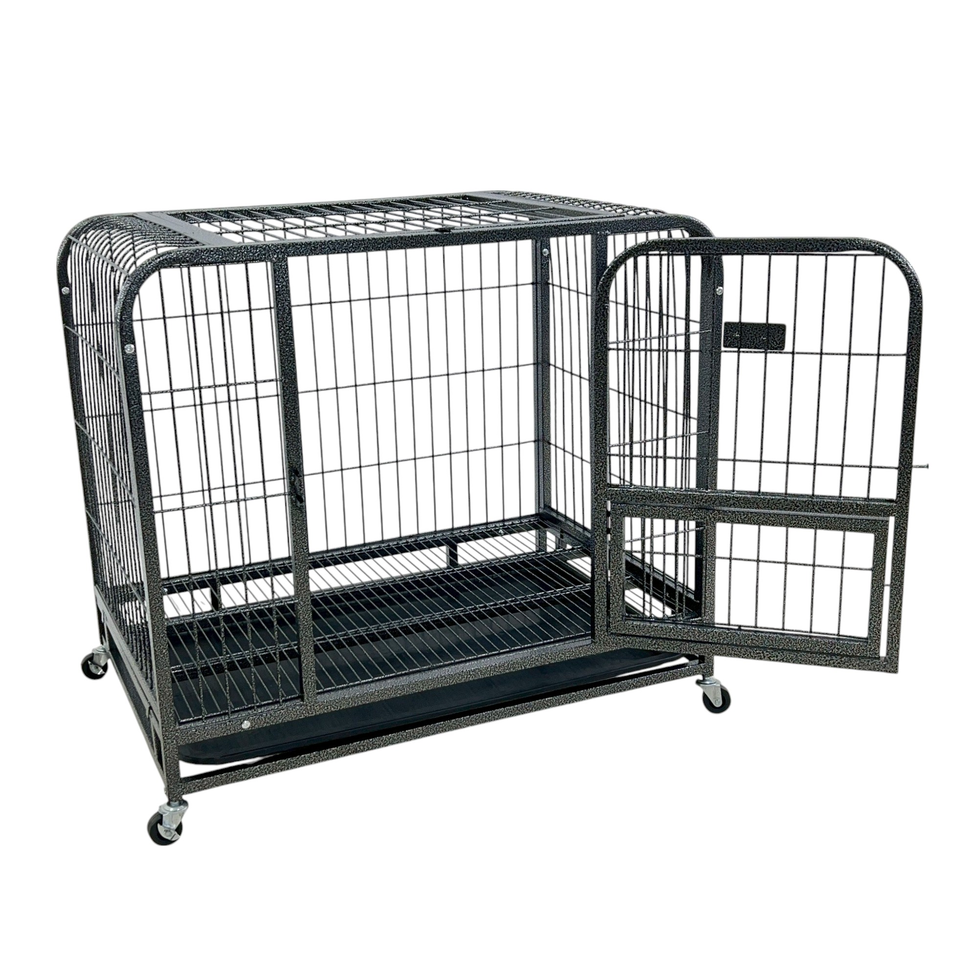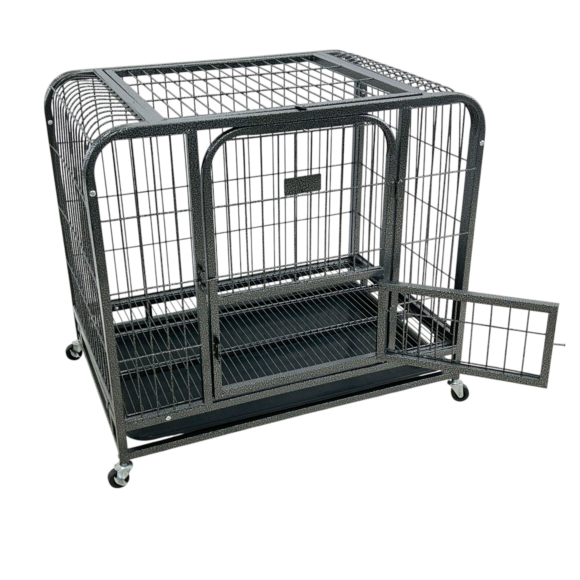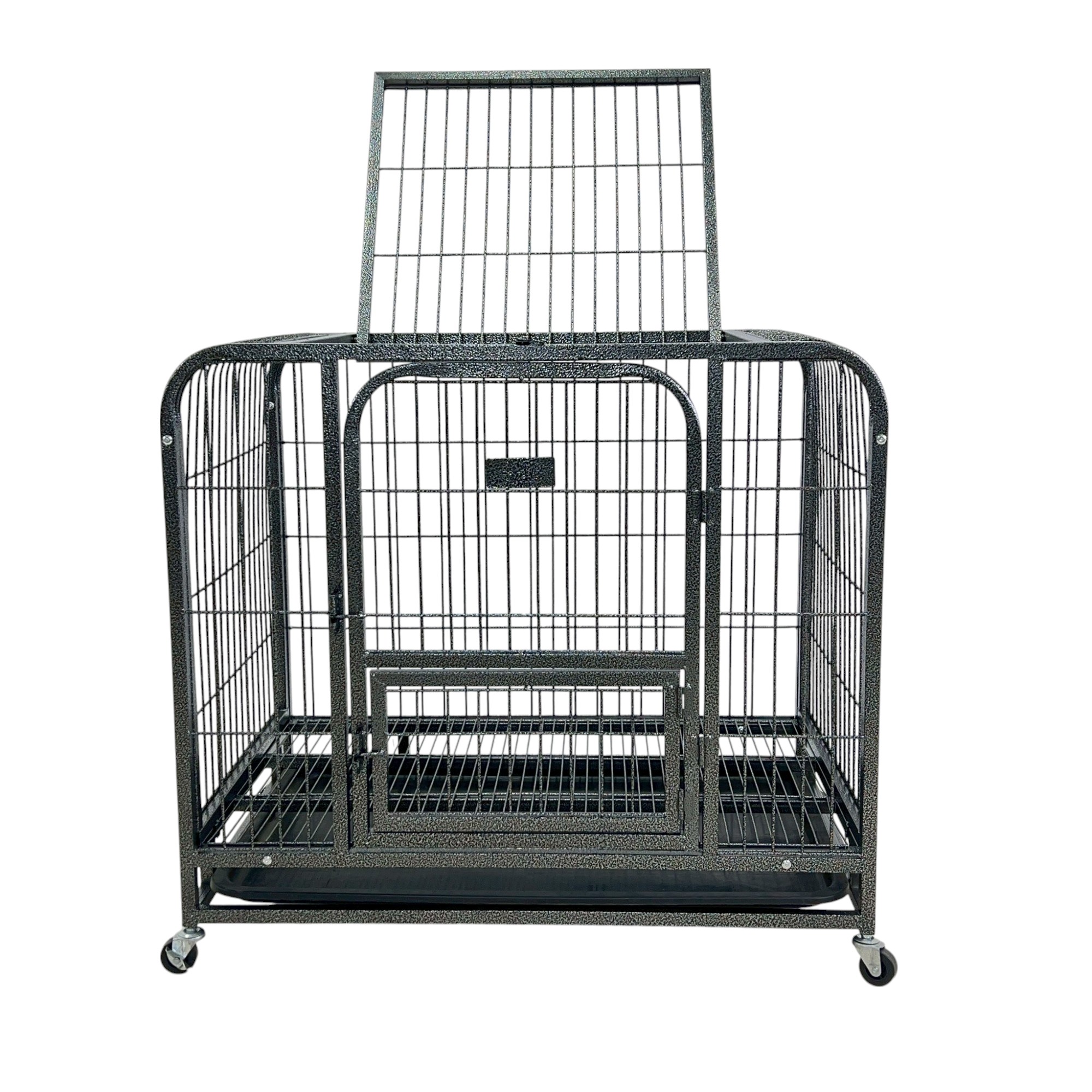 กรงสุนัข กรงสัตว์เลี้ยง พร้อมล้อและถาดรอง 66x94x86 cm สีดำ SAMPLE-940