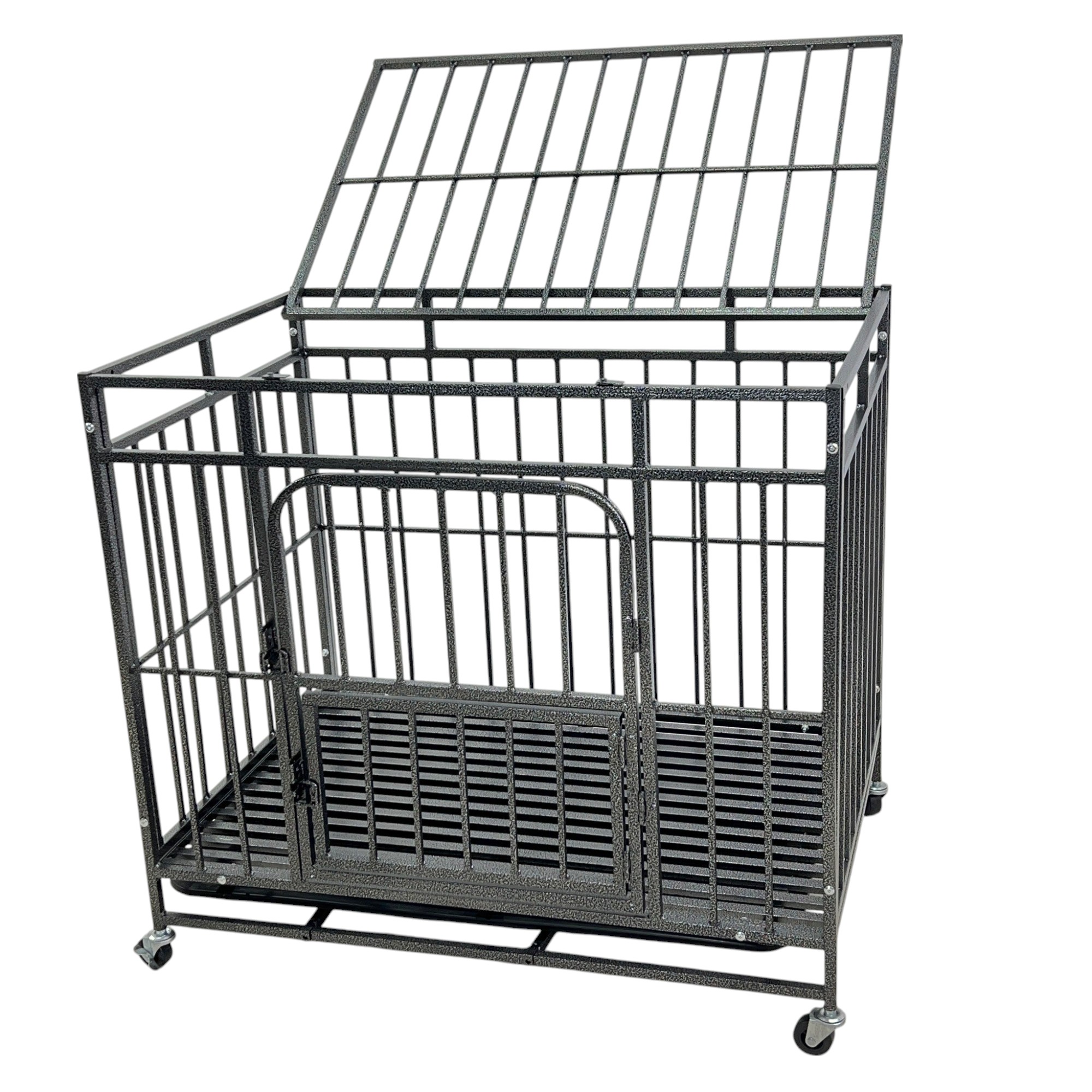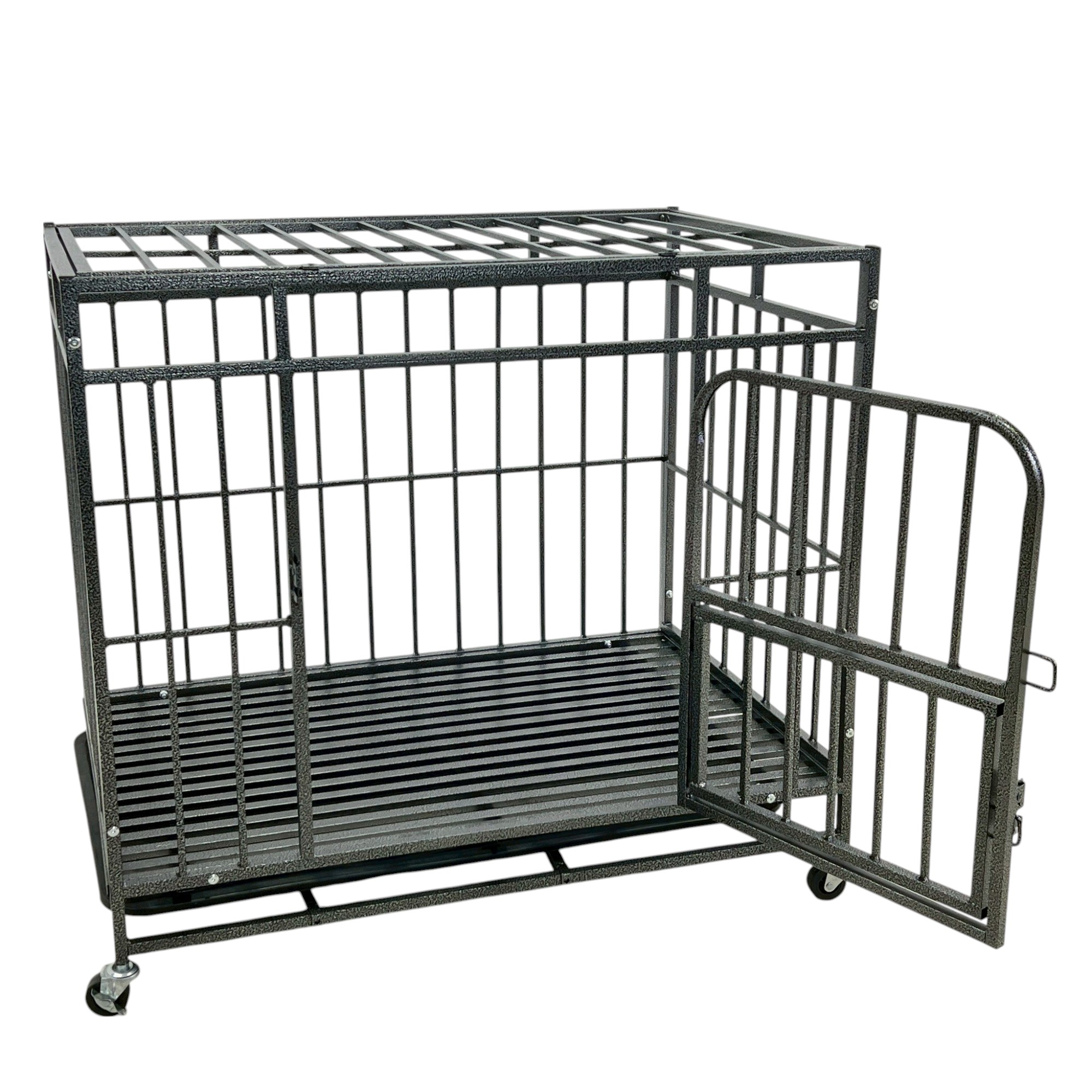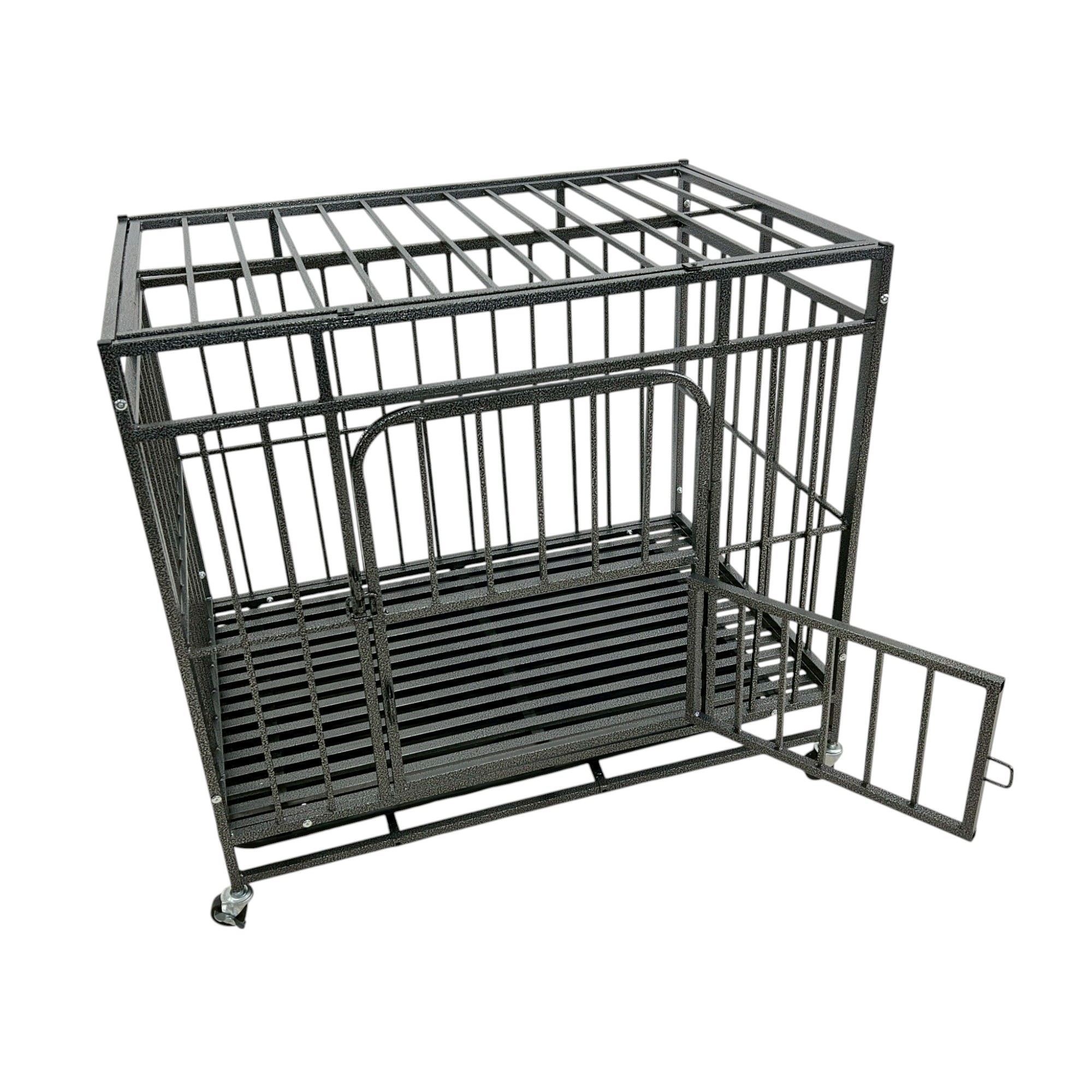 กรงสุนัข กรงสัตว์เลี้ยง พร้อมล้อและถาดรอง 65x93.5x85 cm สีดำ SAMPLE-960