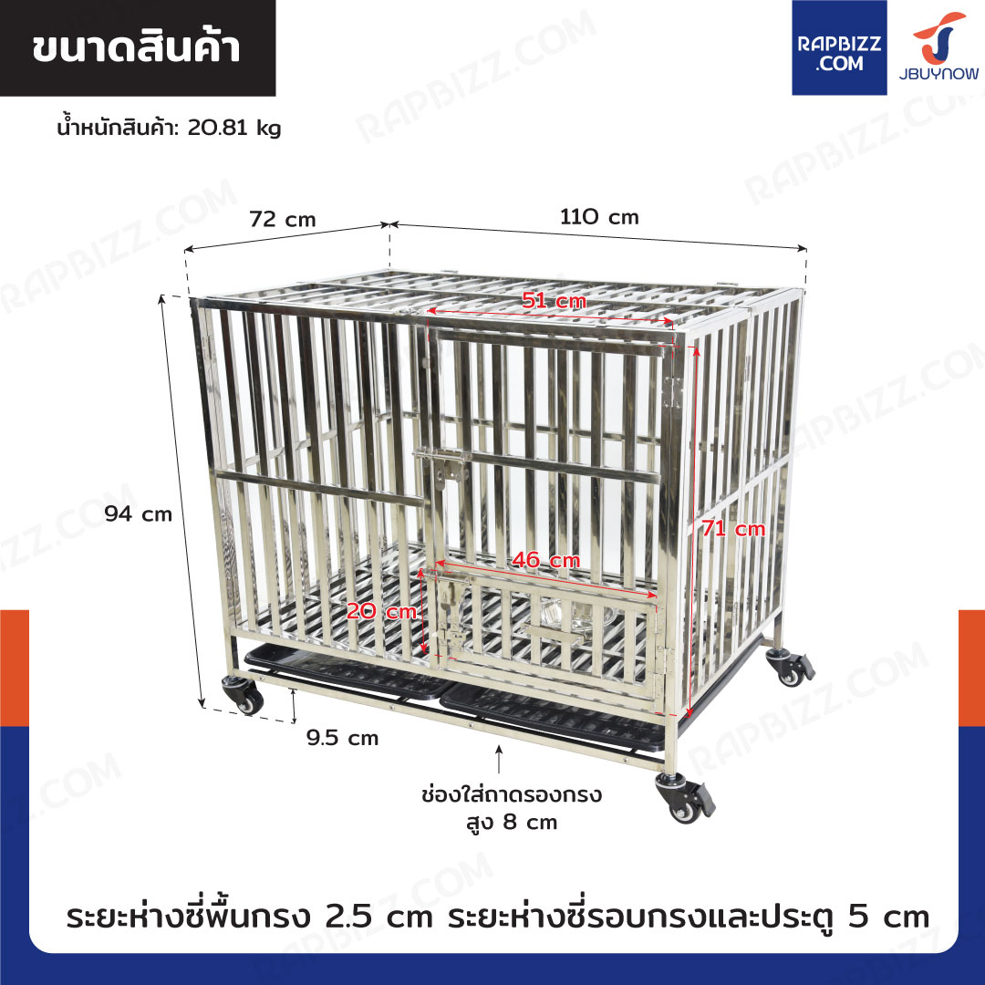 - ระยะห่างระหว่างซี่พื้นกรง: 2.5 cm