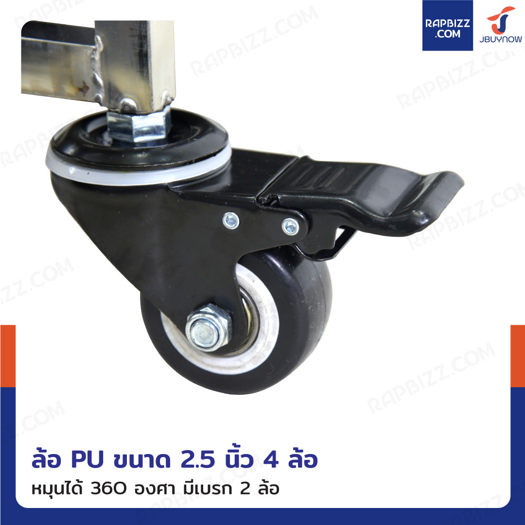 - ล้อ PU ขนาด: 2.5 inch 4 ล้อ (สามารถหมุนได้ 360 องศา มีเบรก 2 ล้อ)