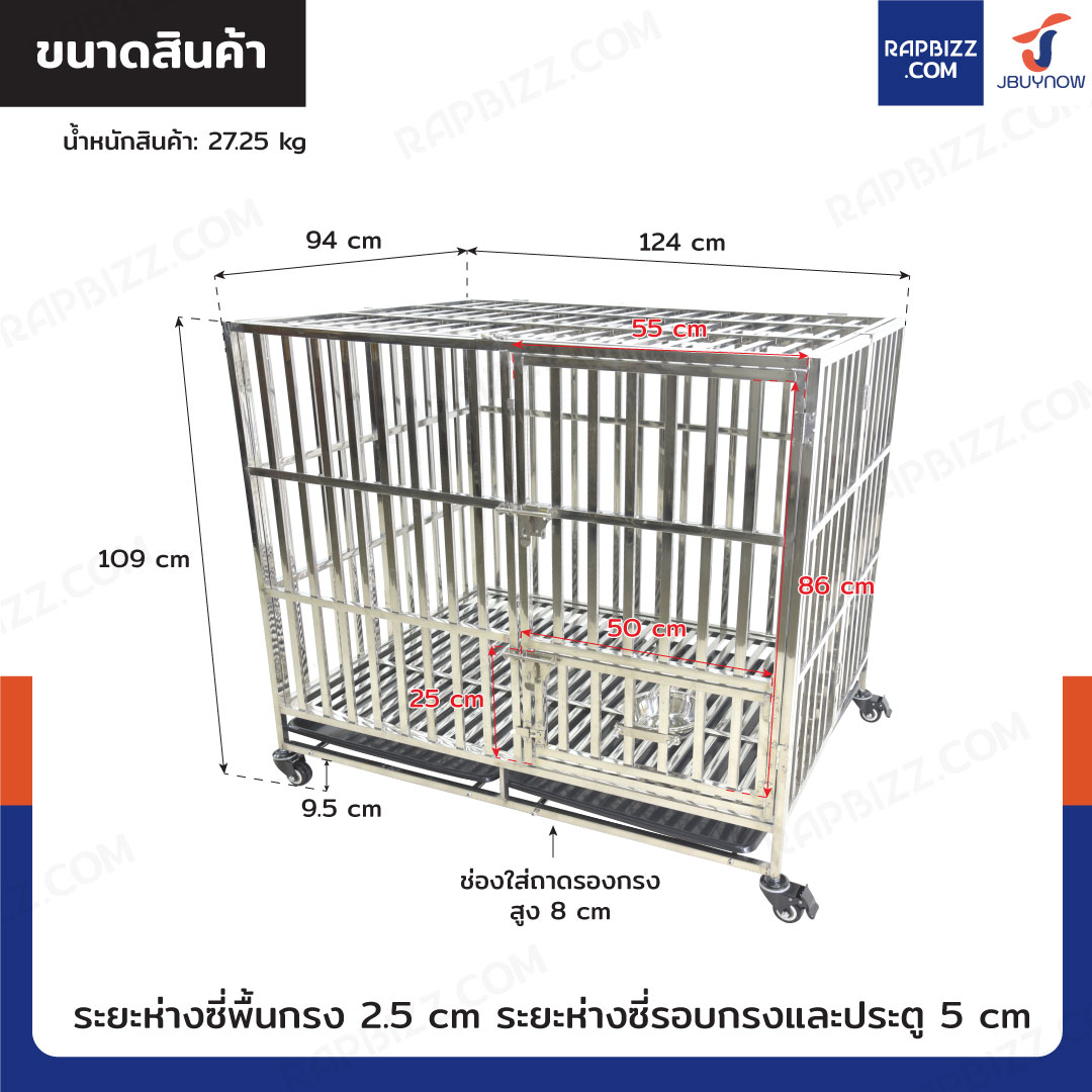 - ระยะห่างระหว่างซี่พื้นกรง: 2.5 cm