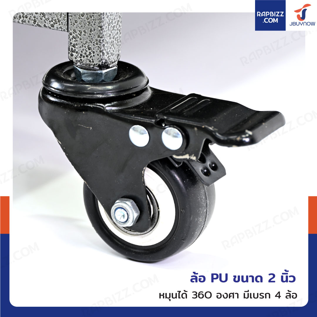 - ล้อ PU ขนาด 2 นิ้ว หมุนได้ 360 องศา มีเบรก 4 ล้อ