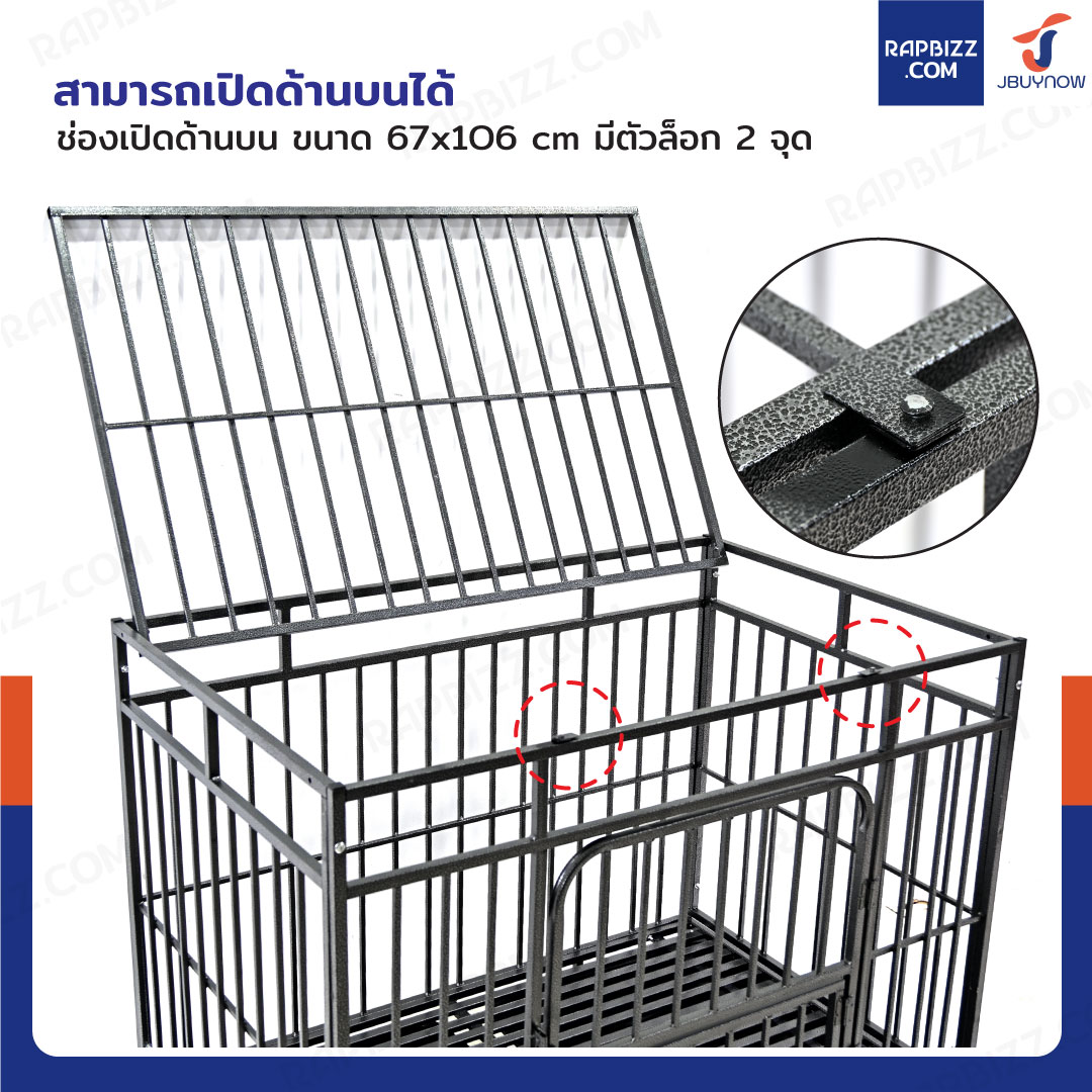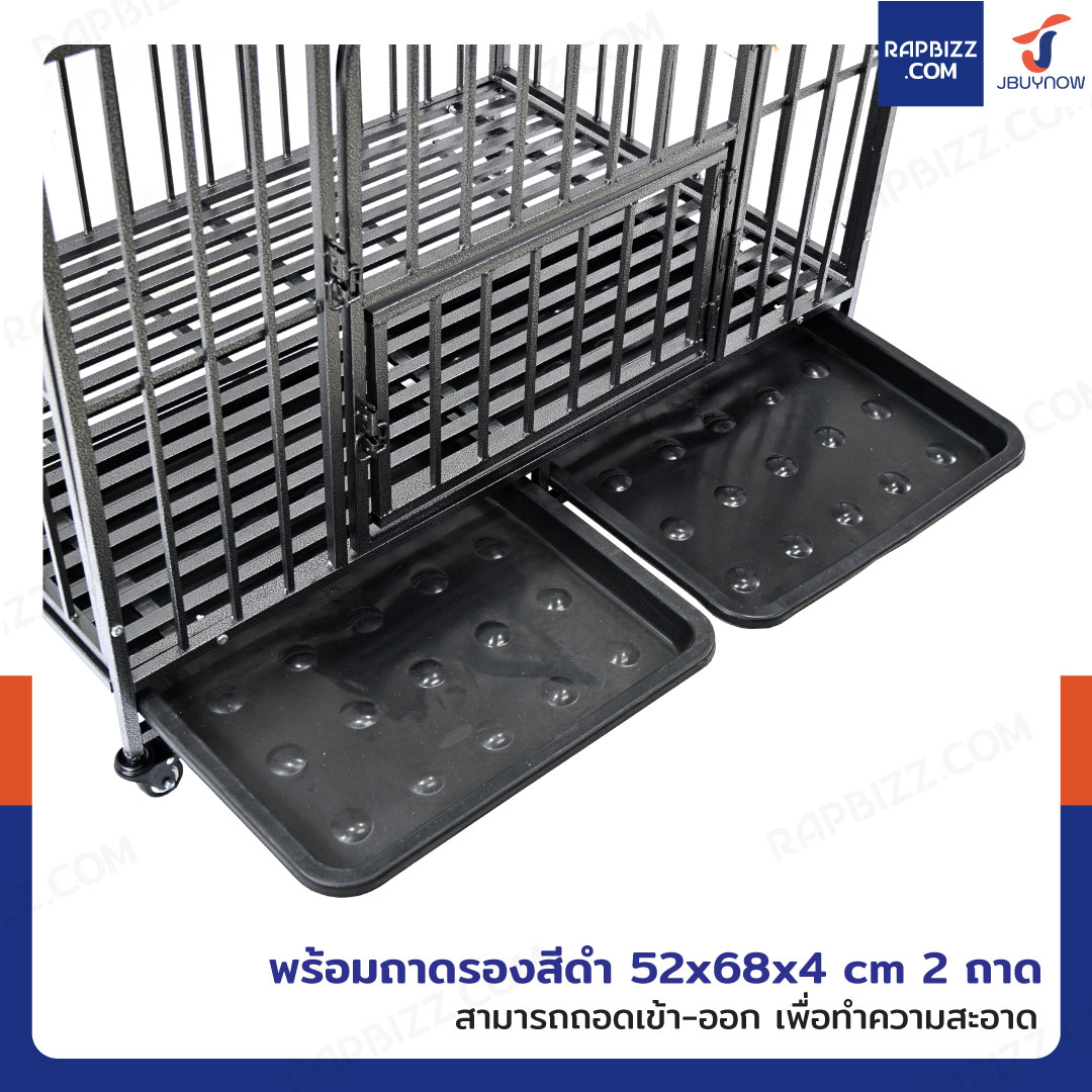 กรงสุนัข กรงสัตว์เลี้ยง รุ่นเหล็กกล่อง พร้อมล้อและถาดรอง Size L 71x108x92 cm สีดำเทา
