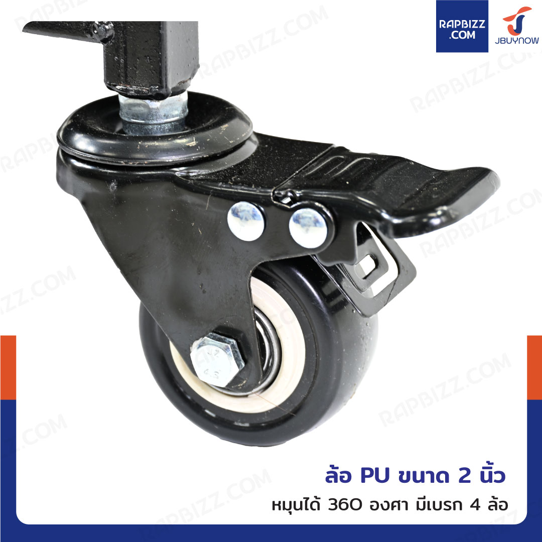 - ล้อ PU ขนาด 2 นิ้ว หมุนได้ 360 องศา มีเบรก 4 ล้อ