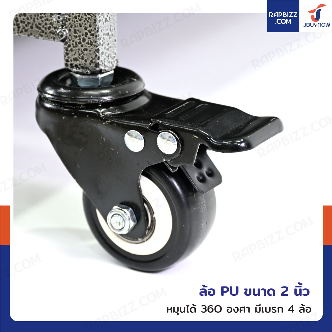 - ล้อ PU ขนาด 2 นิ้ว หมุนได้ 360 องศา มีเบรก 4 ล้อ