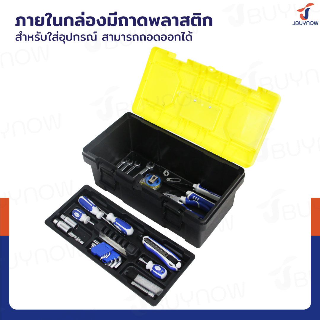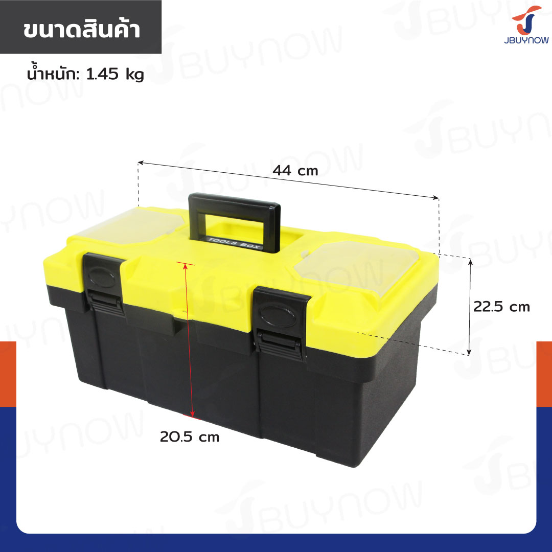 กล่องเครื่องมือพลาสติก 17 นิ้ว แบบพกพา มีถาดรองด้านใน 22.5x44x20.5 CM สีดำ-เหลือง