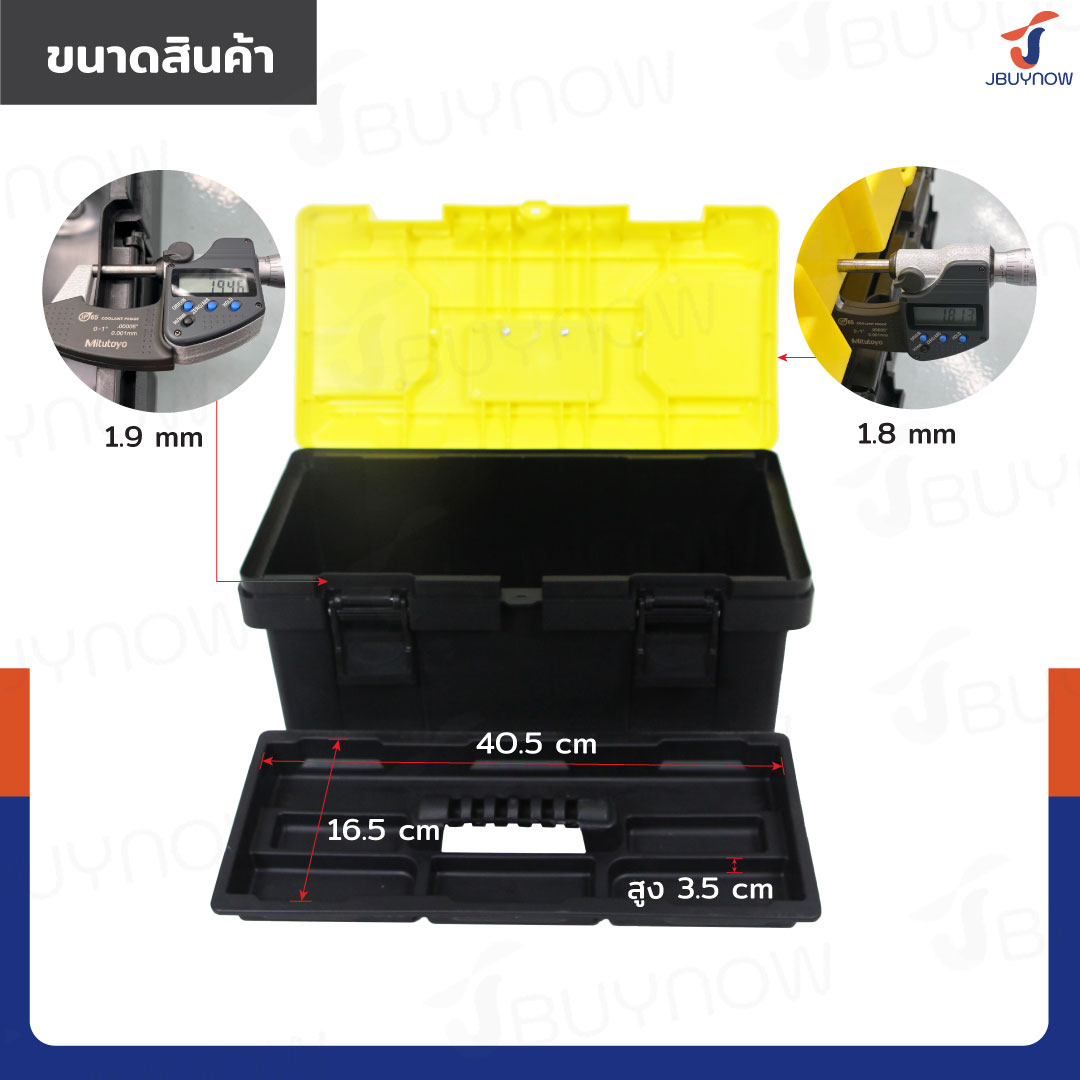 - ตัวกล่องสีดำ หนา 1.9 mm ตัวฝาสีเหลือง หนา 1.8 mm
