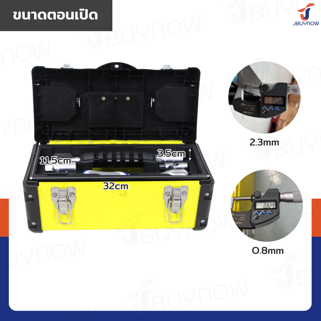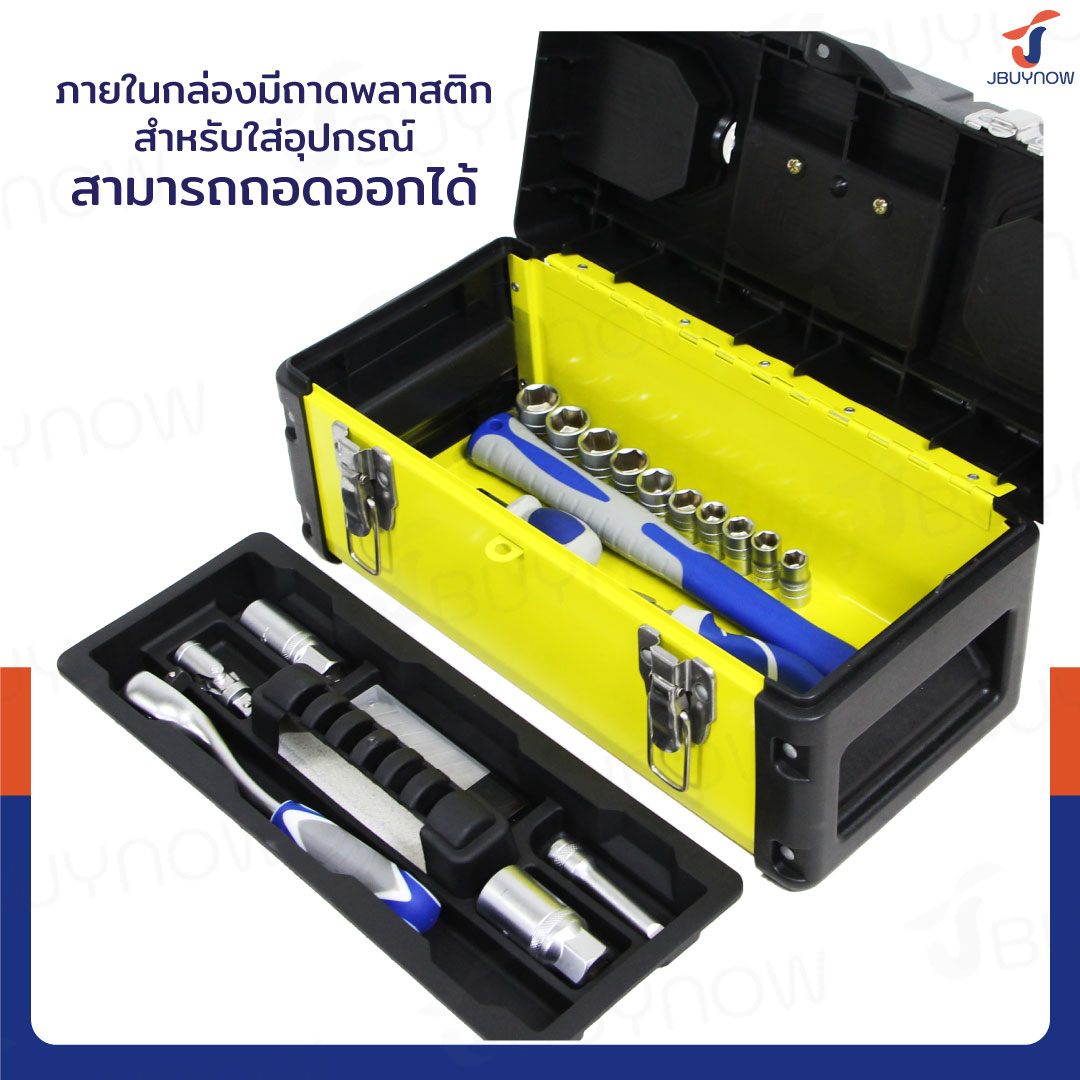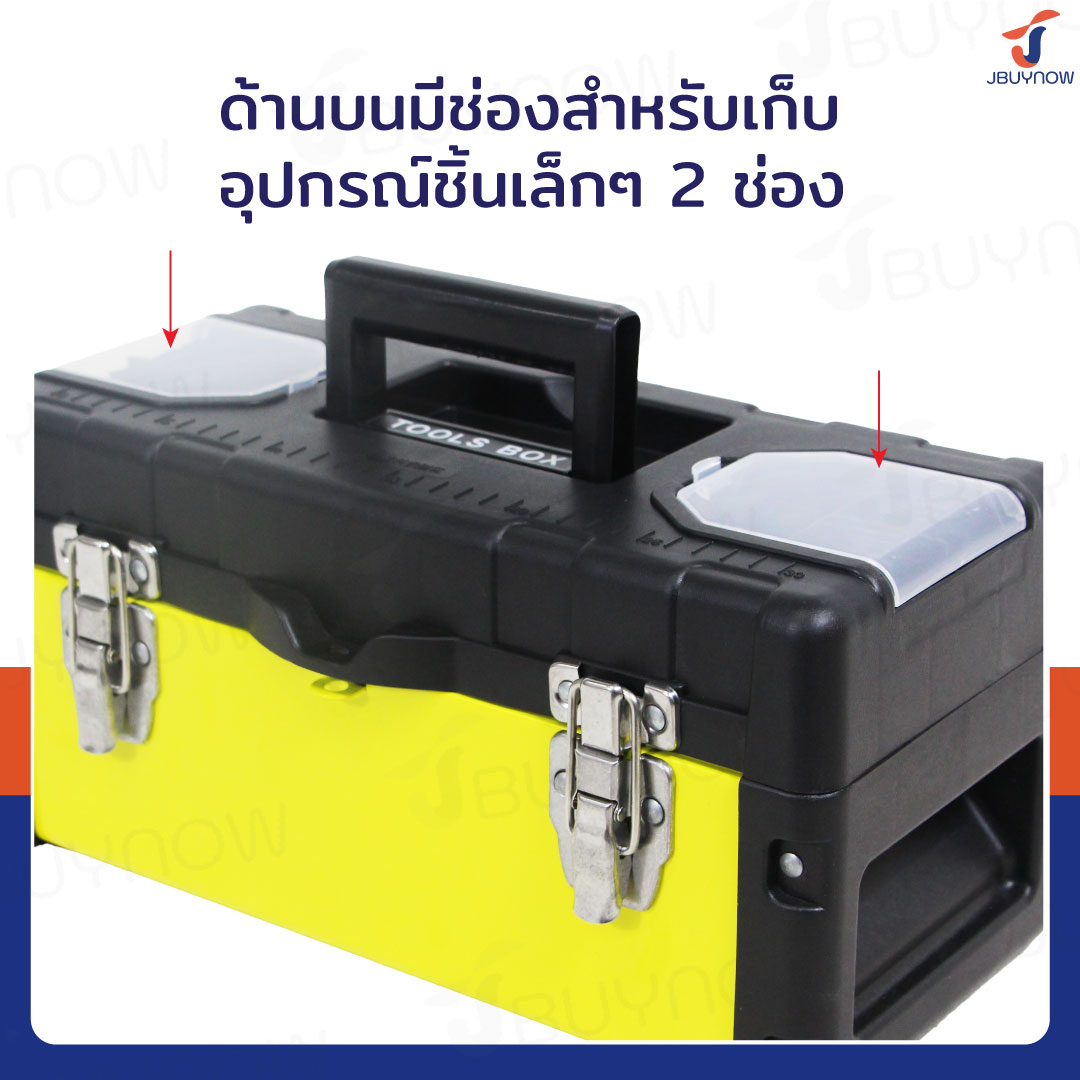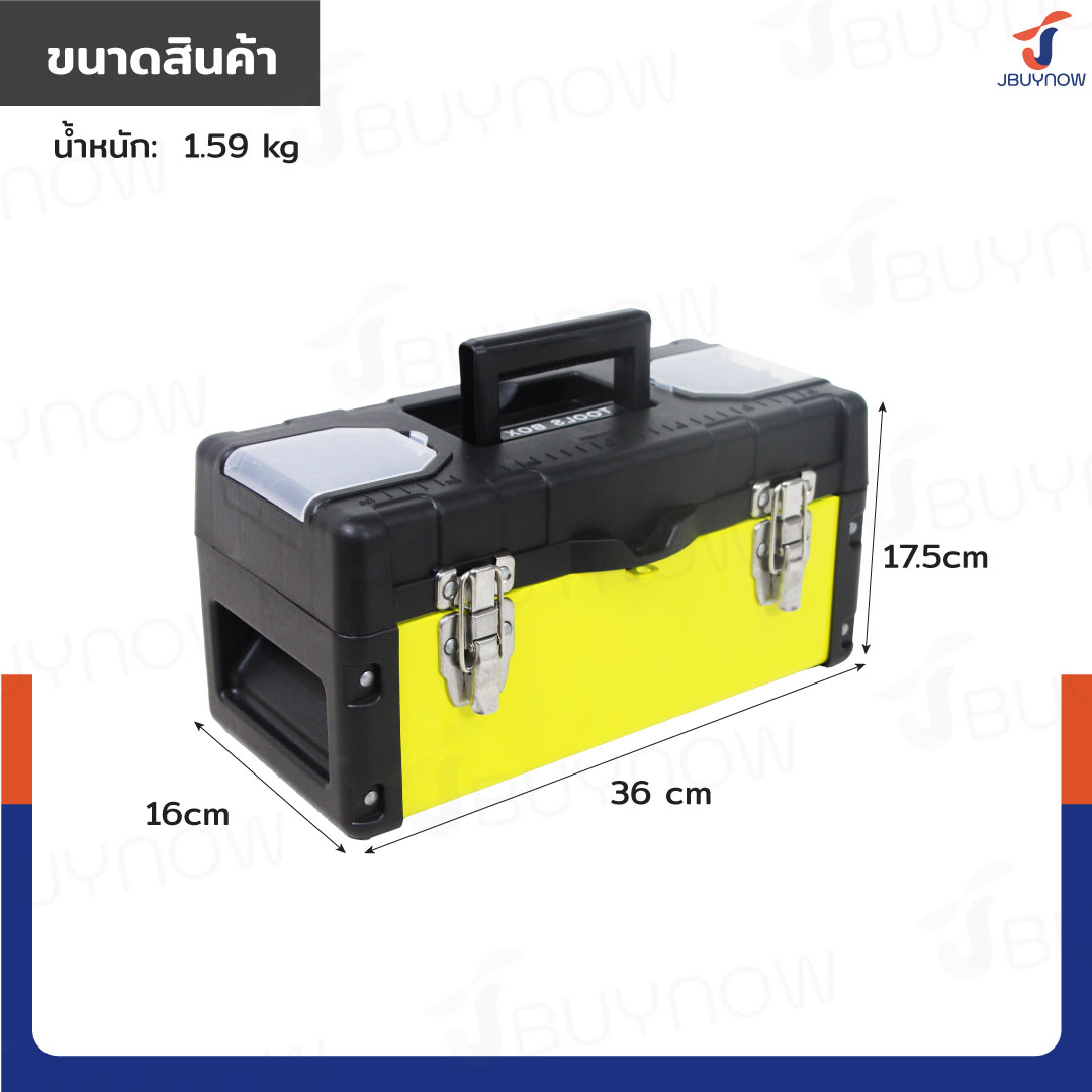 กล่องเครื่องมือเหล็ก 14 นิ้ว แบบมีถาดรองด้านใน ขนาด 16x36x17.5 CM สีดำ-เหลือง