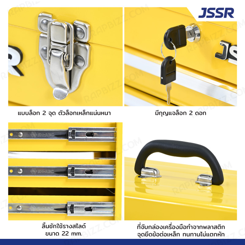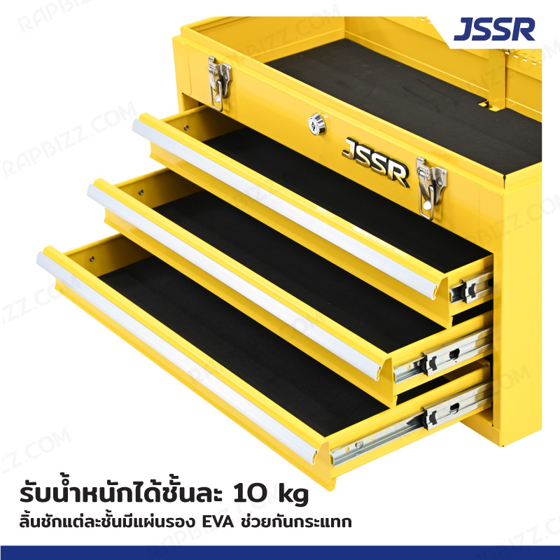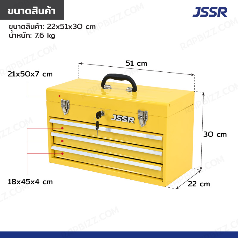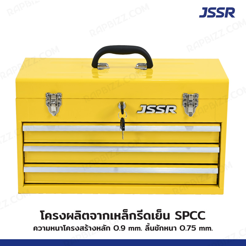 JSSR กล่องเครื่องมือ 20 นิ้ว รุ่น 3 ลิ้นชัก เปิดบนได้ 22x51x30 ซม.สีเหลือง ZR-TB001-YE