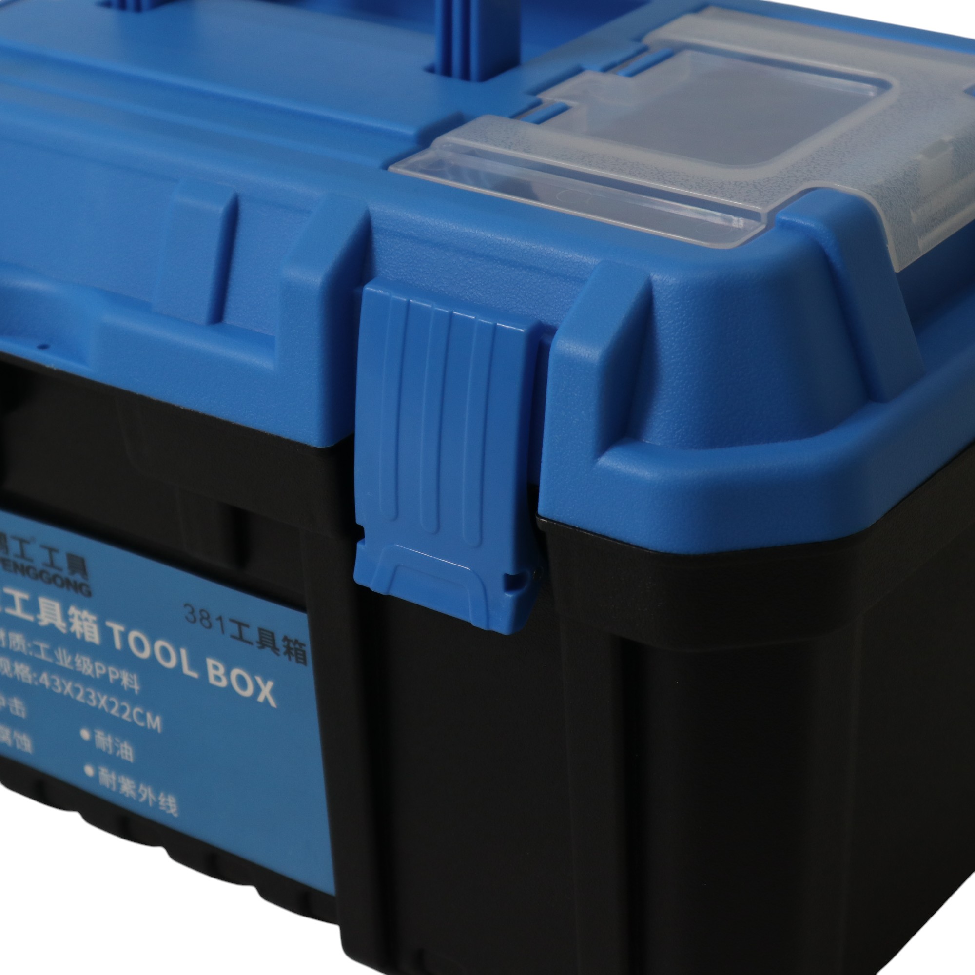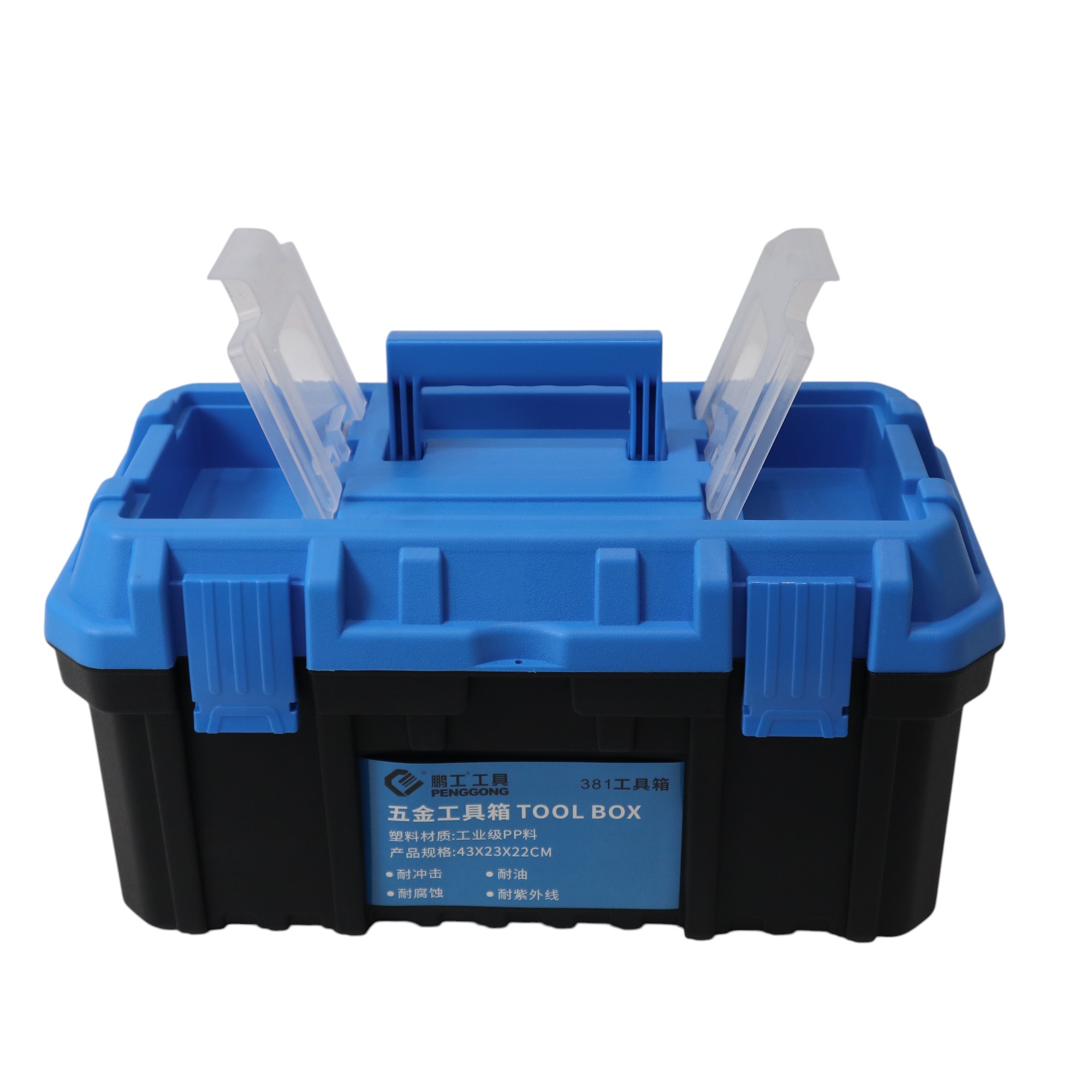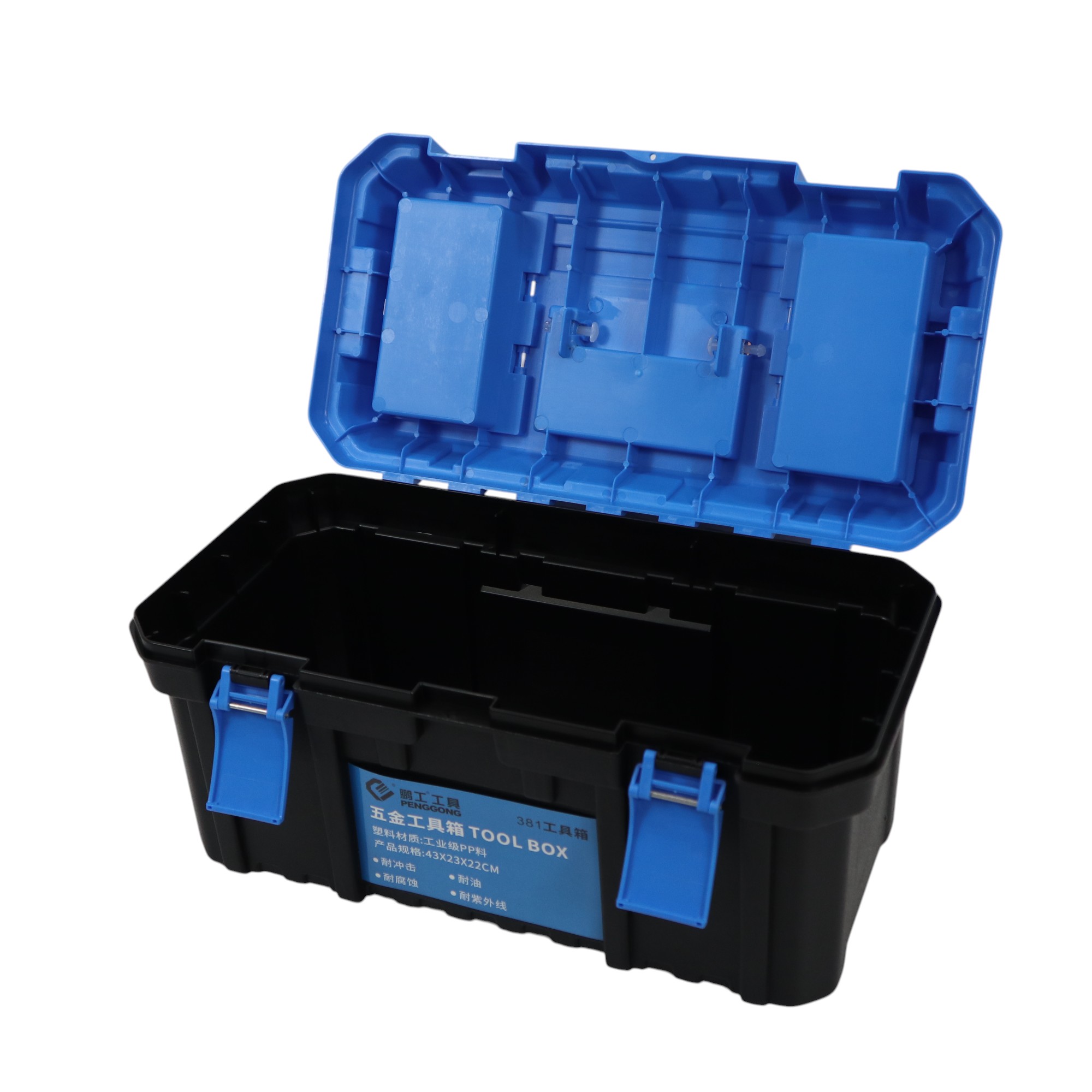 กล่องเครื่องมือพลาสติก 17 นิ้ว แบบพกพา มีถาดรองด้านใน 22x43x22 CM สีดำ-ฟ้า