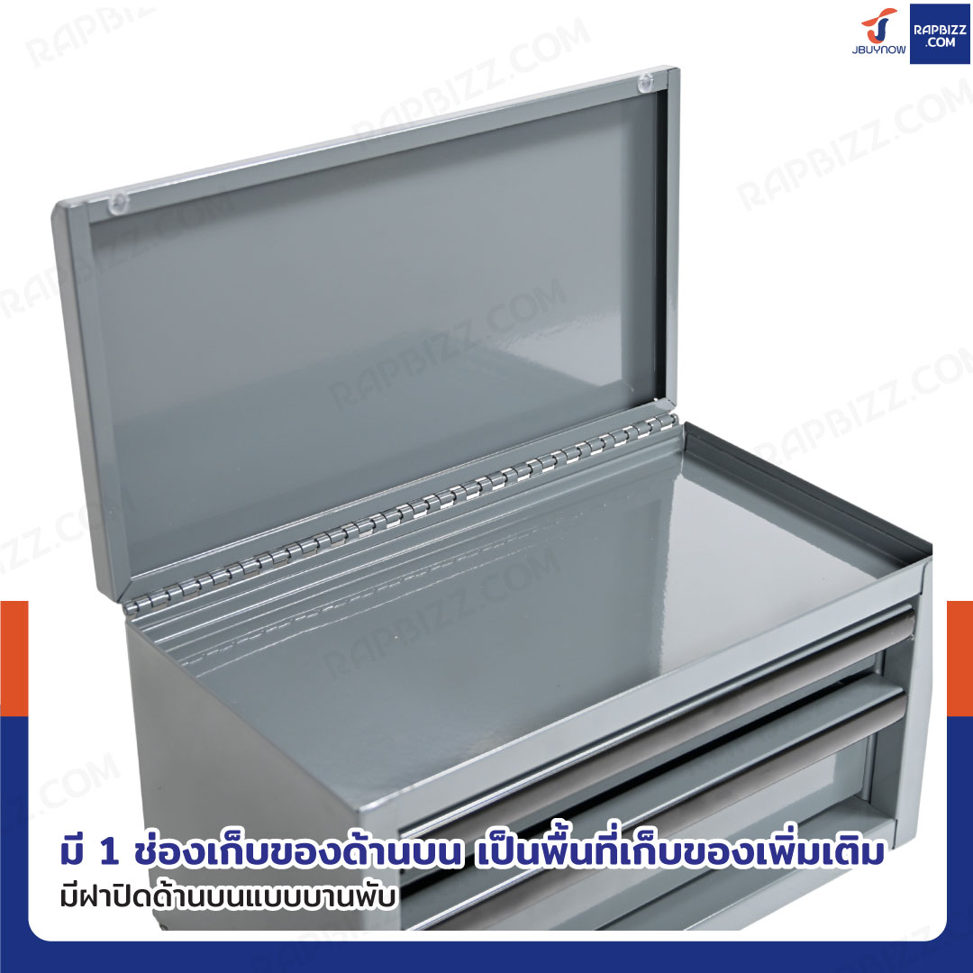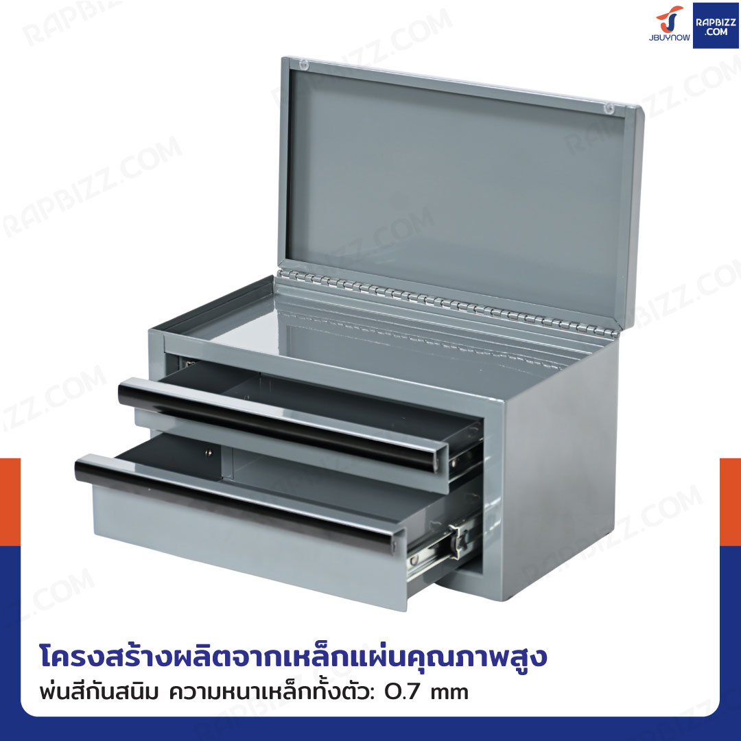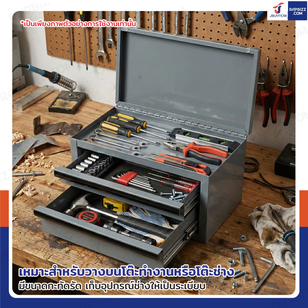 กล่องเครื่องมือเหล็กตั้งโต๊ะ 2 ลิ้นชัก+ 1 ช่องเก็บของ 15x28x15 cm สีเทา